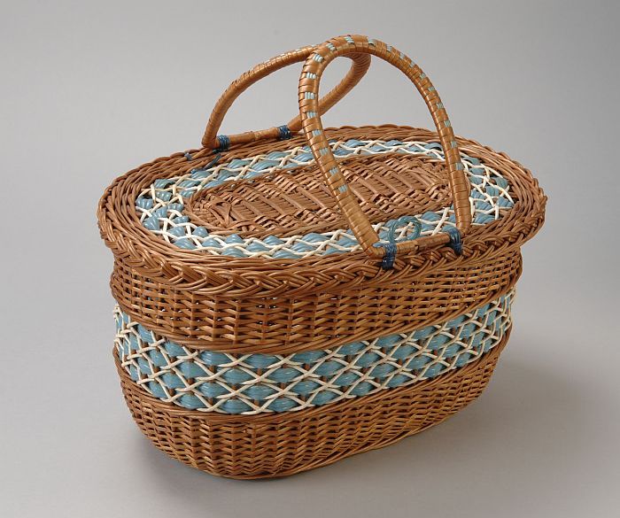 Collier, twee delen turkoois-zwart en goudgeel gewev...