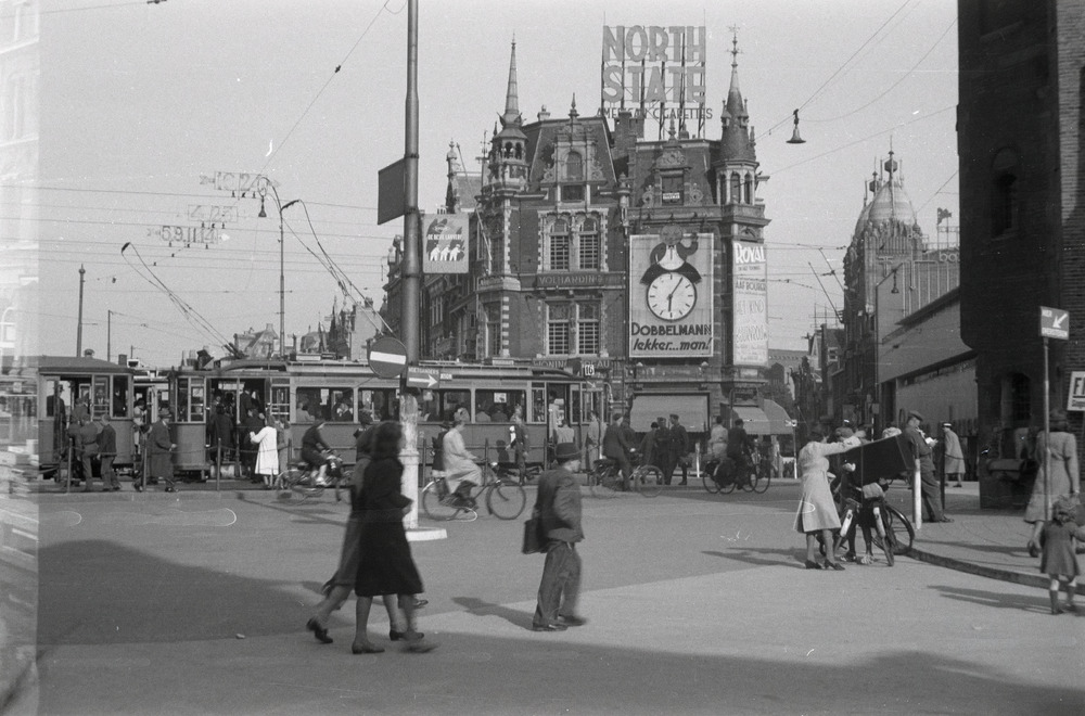 Het Muntplein in Amsterdam. In de straat rechts het ...