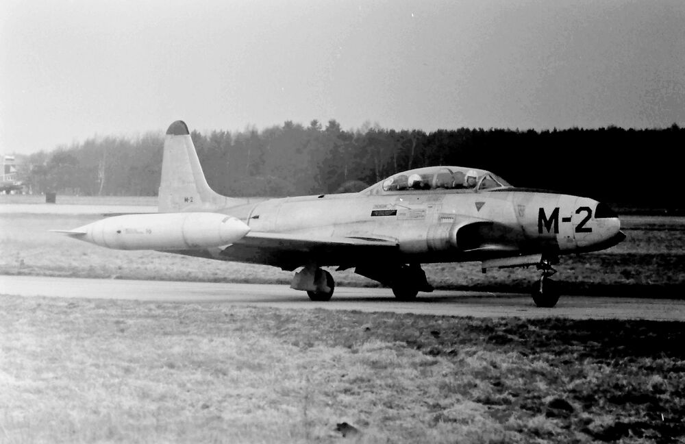 Lockheed T-33 Koninklijke Luchtmacht M-2 op de rolbaan.
