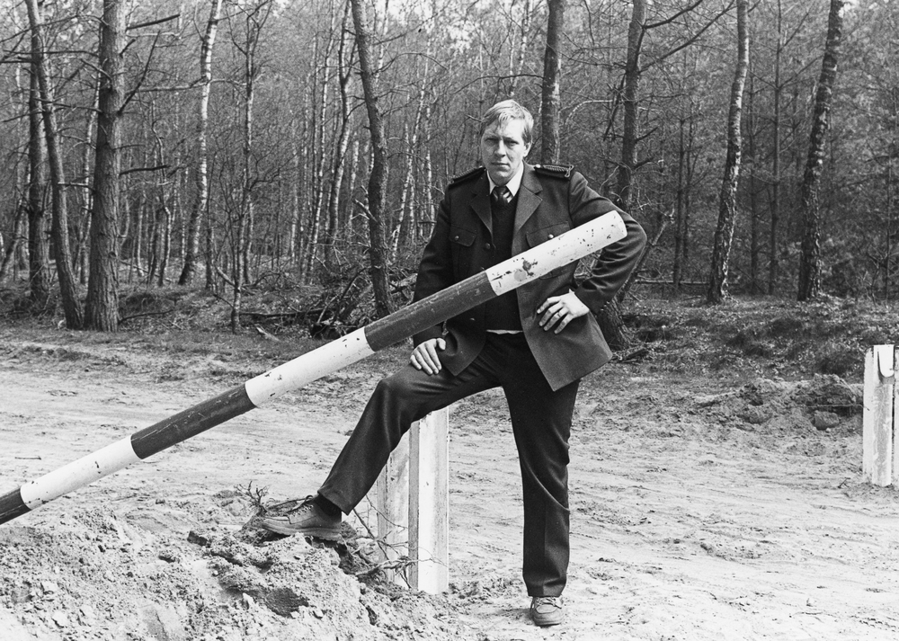 Bosopzichter Roel Janssen bij een vernielde slagboom