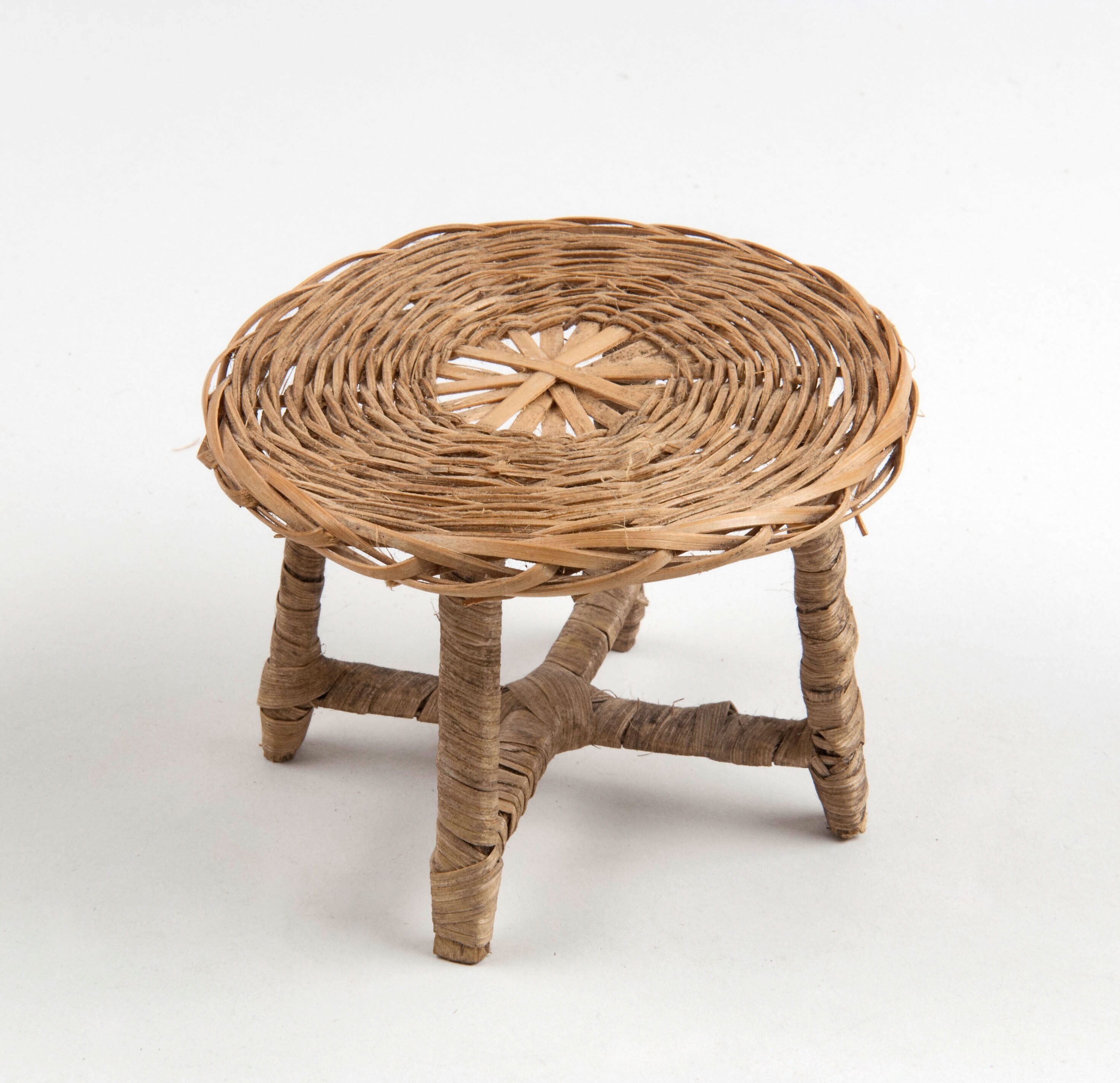 Miniatuur speelgoed tafeltje van gevlochten bamboerepen