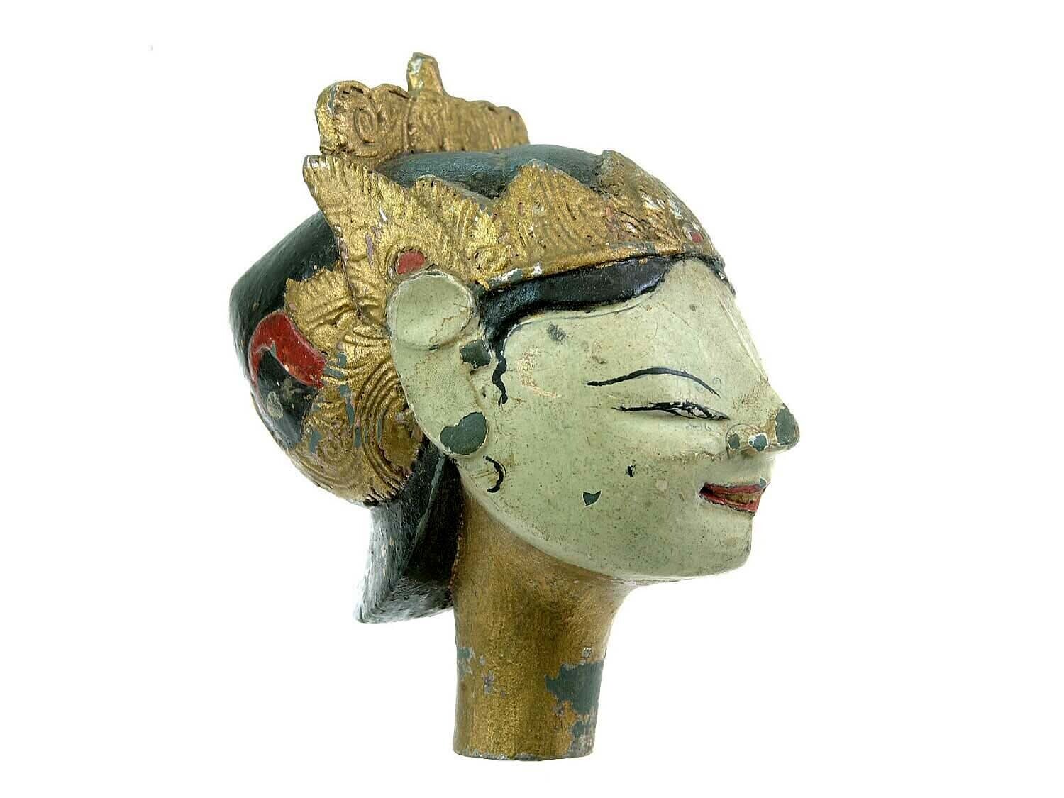 Ronde houten wayangpop (golek) voorstellend een vrou...