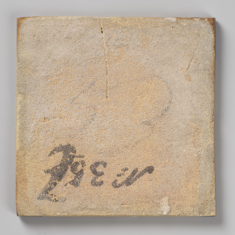 randtegel van aardewerk met tinglazuur, voorstellend...