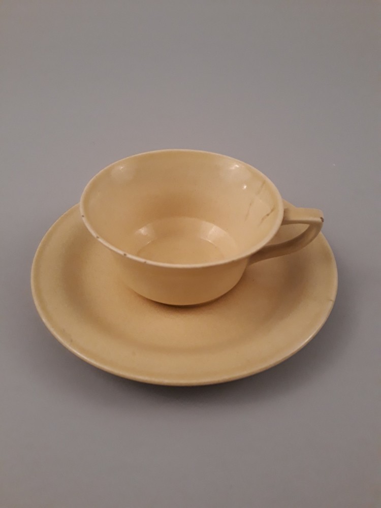 Theekop en schotel van aardewerk