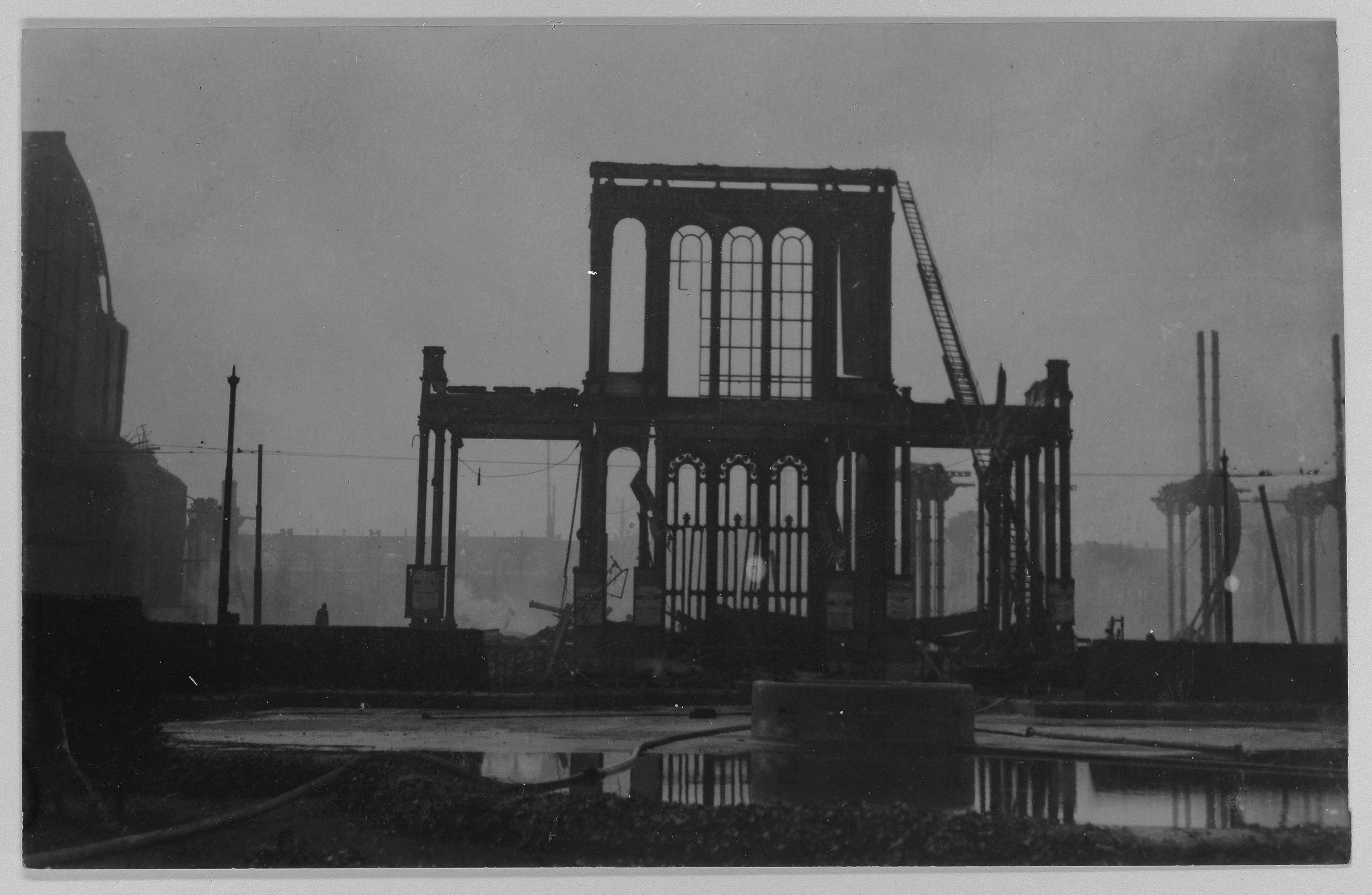 Restant van het Paleis voor Volksvlijt na de brand i...