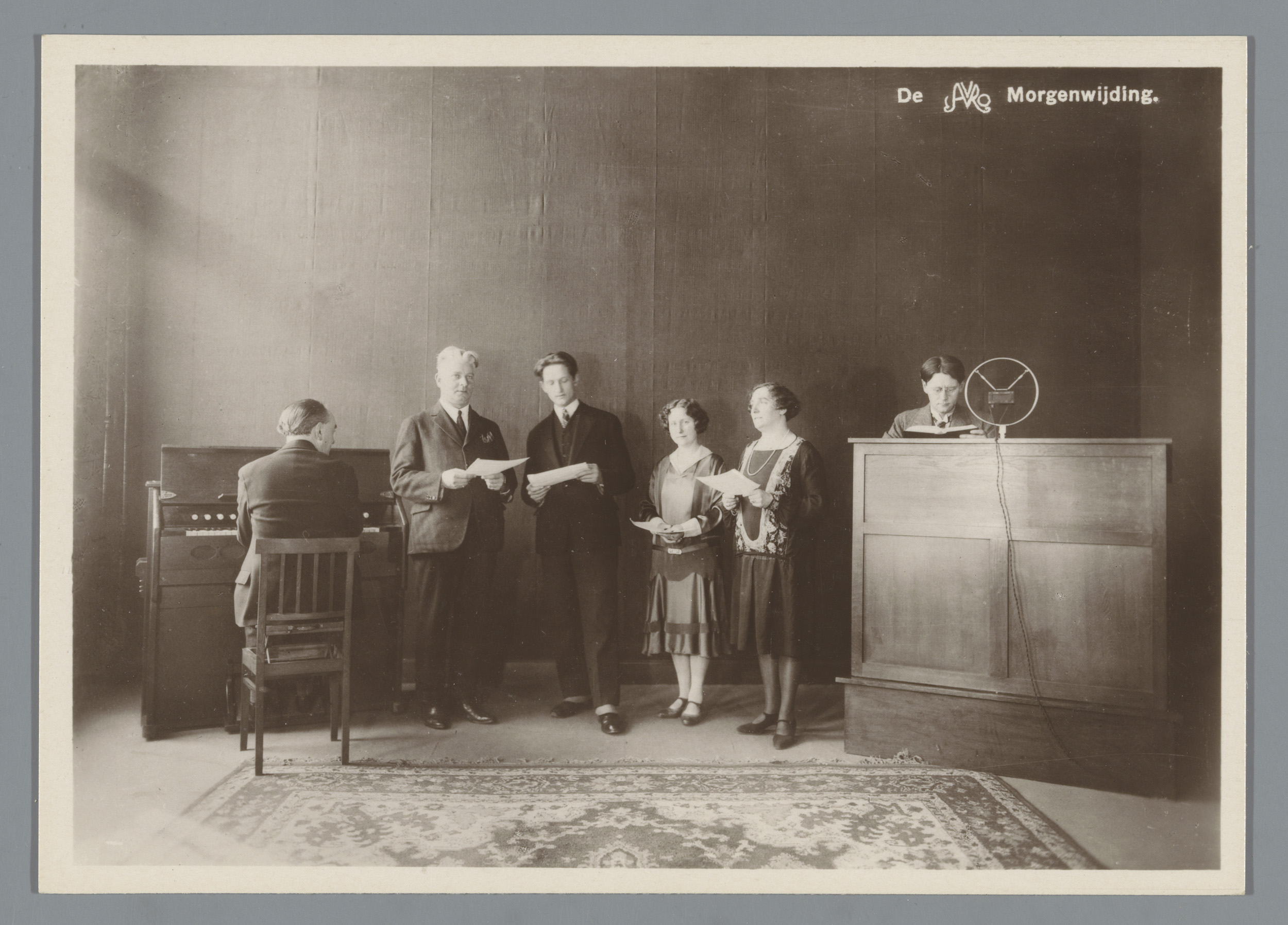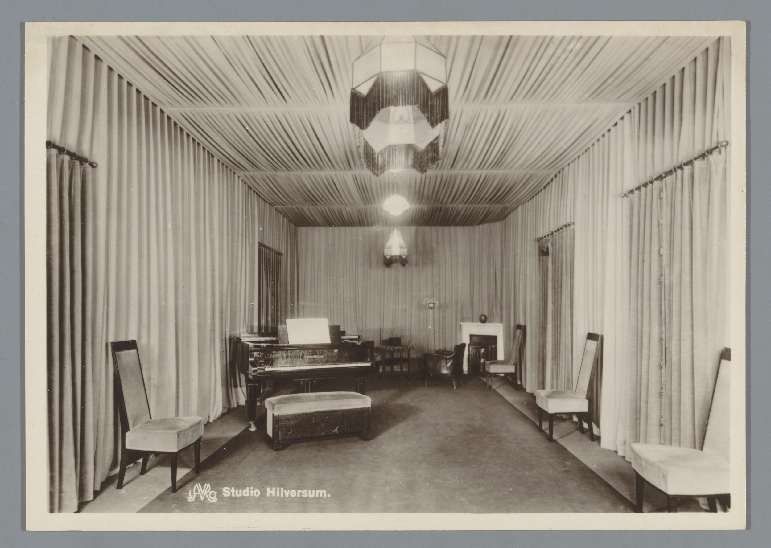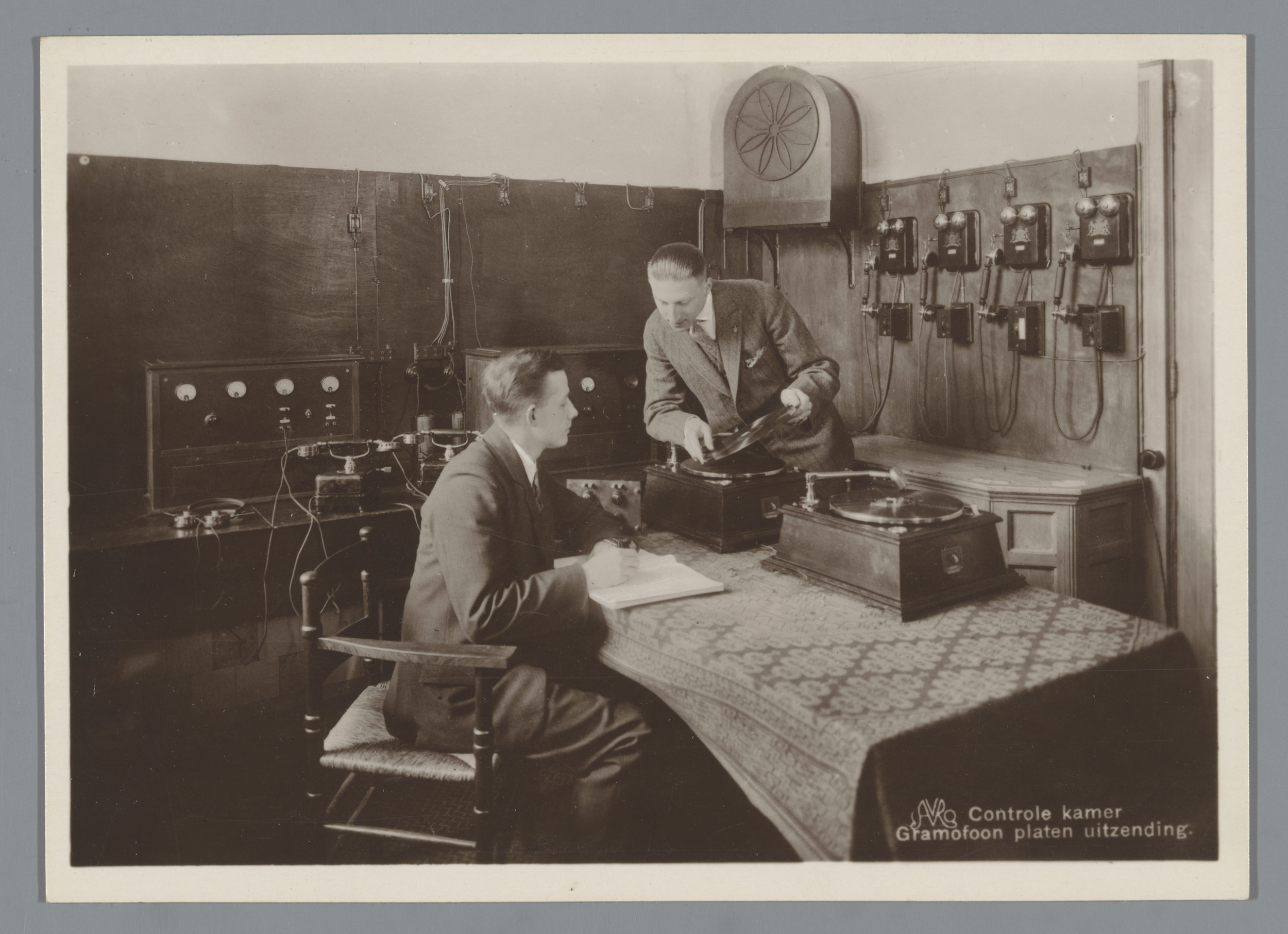 Portret in controlekamer tijdens grammofoonplaten ui...