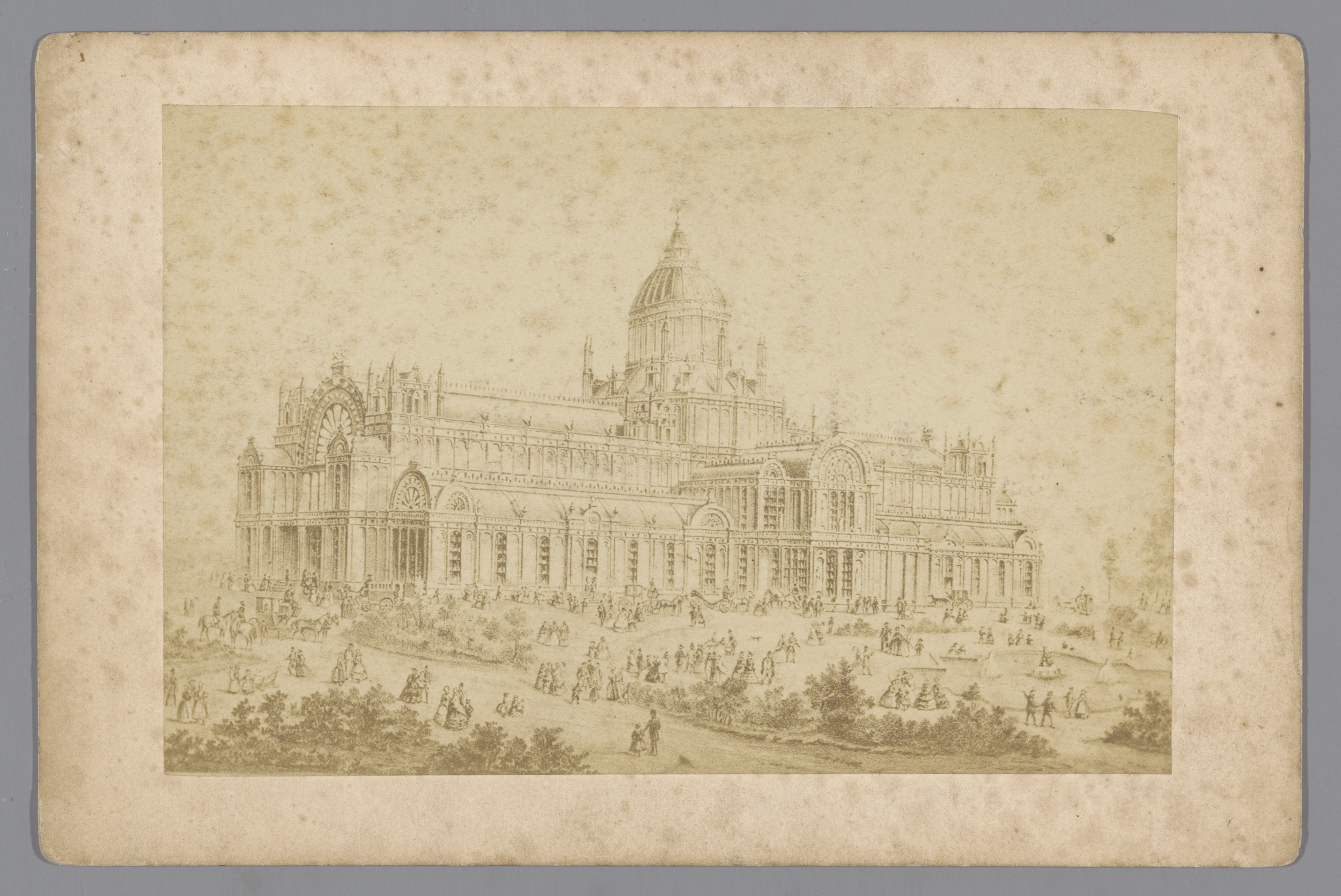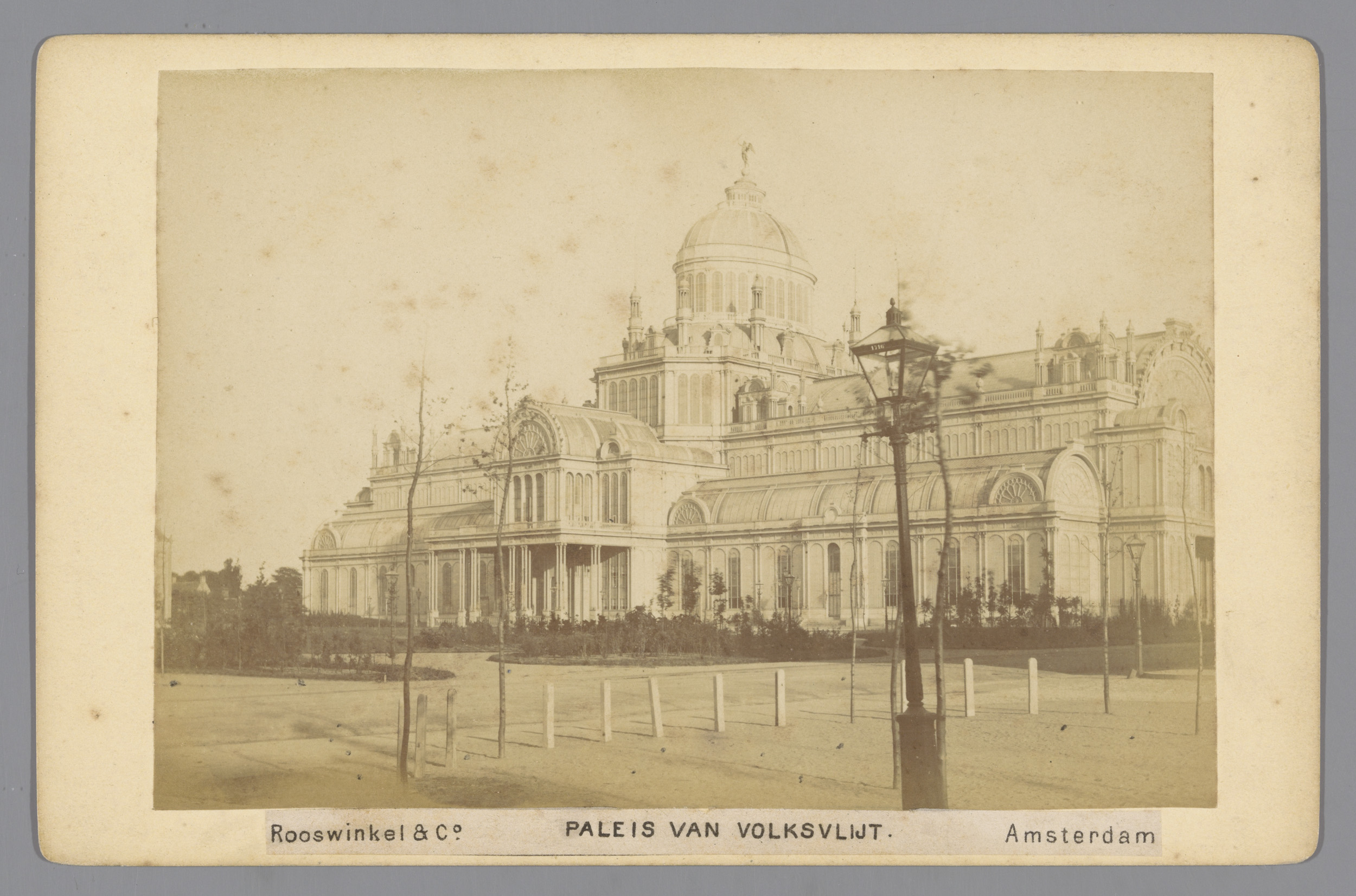 Gezicht op het Paleis voor Volksvlijt te Amsterdam