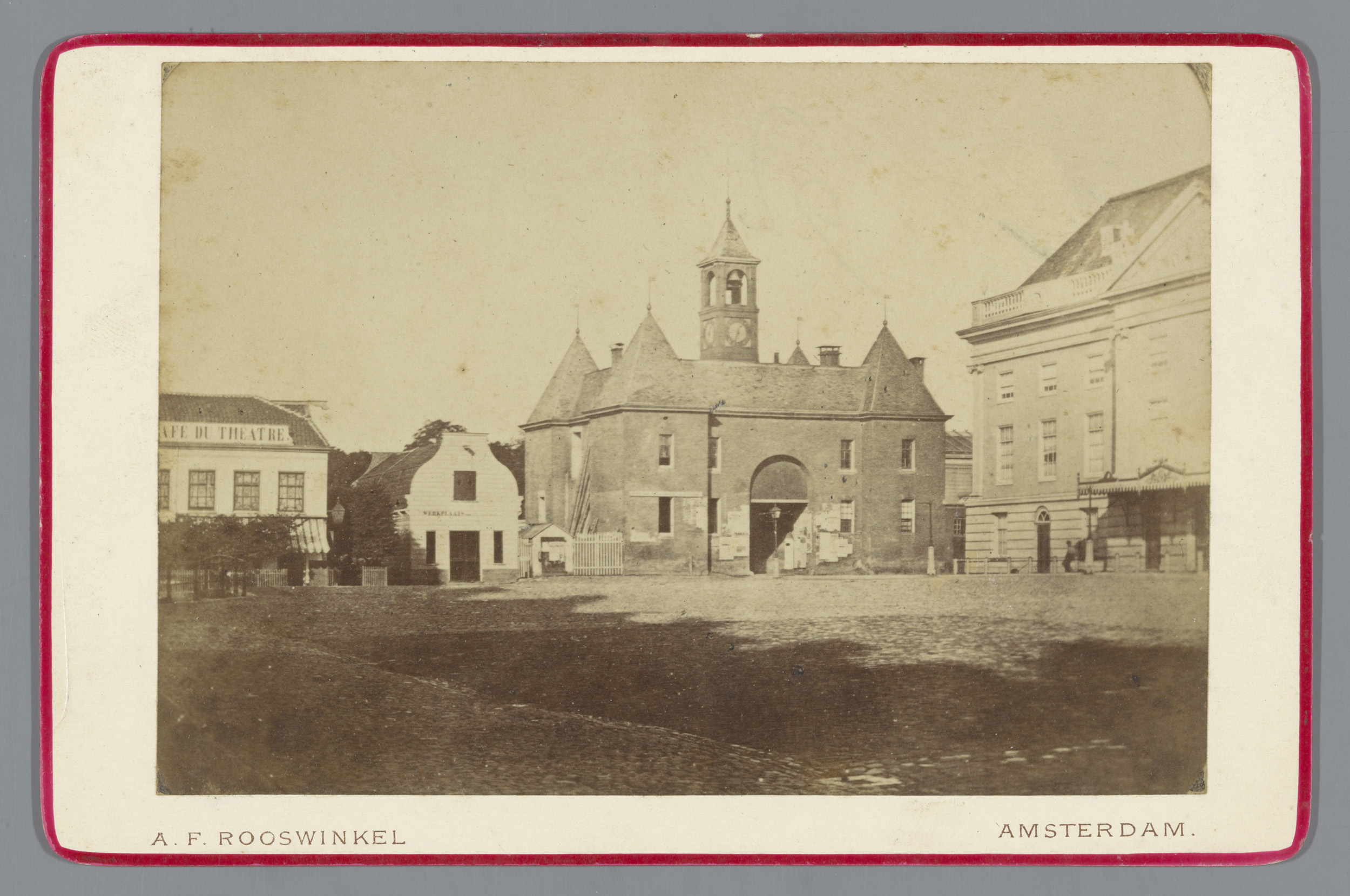 Gezicht op Brack's Doelen Hotel te Amsterdam