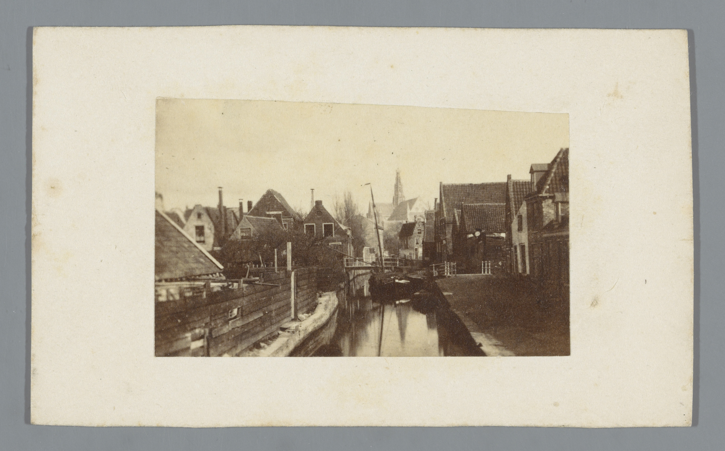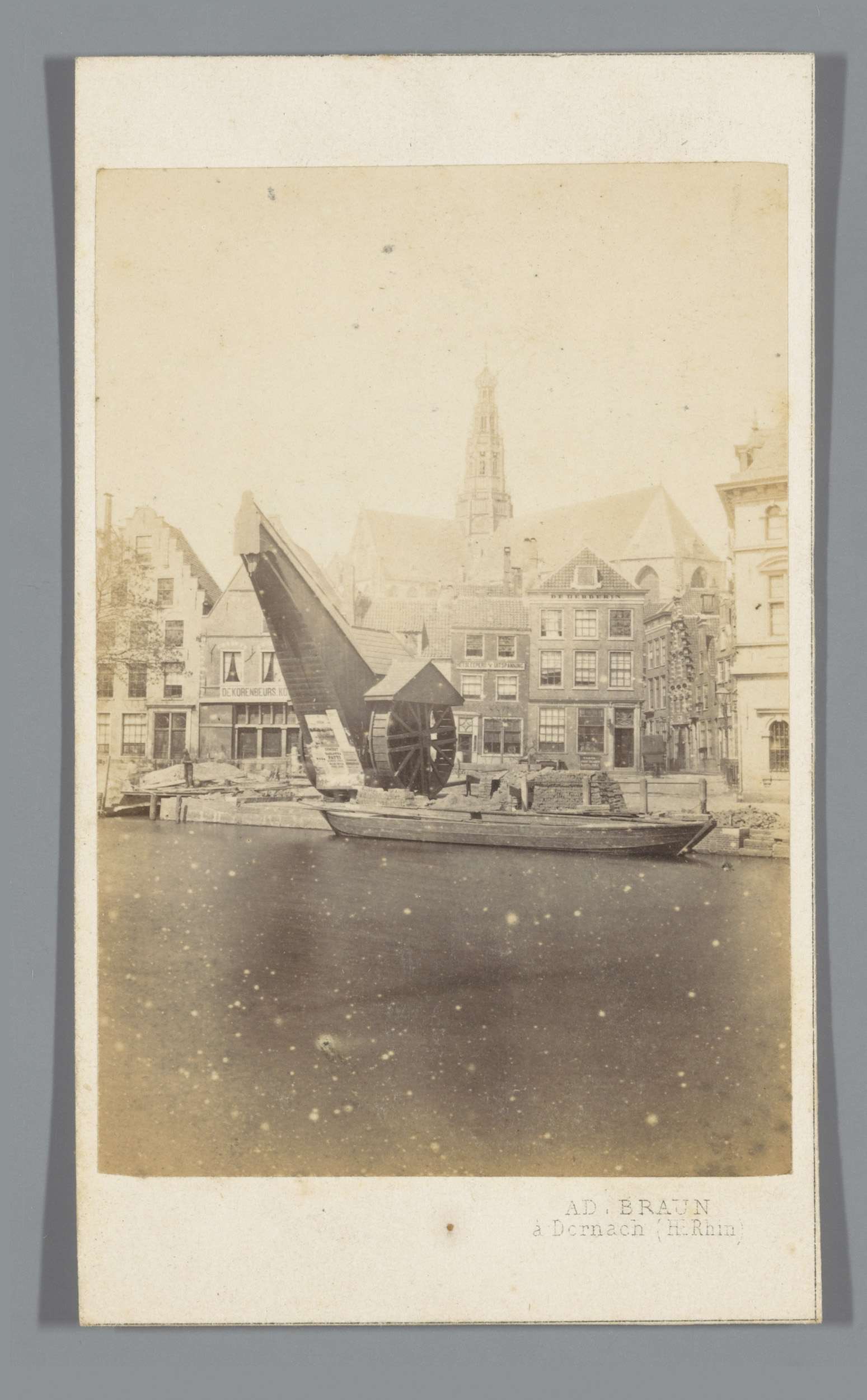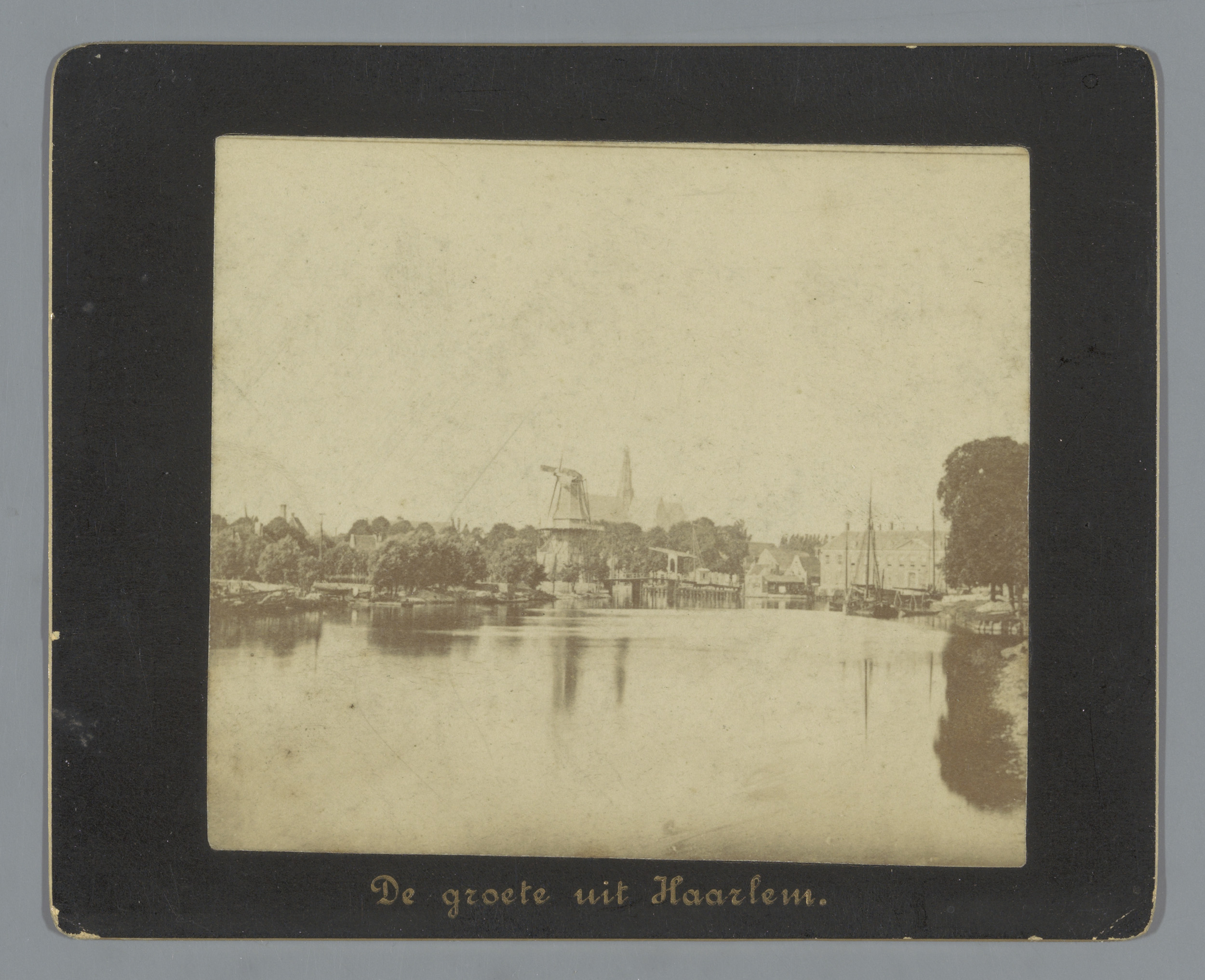 Gezicht op het Spaarne te Haarlem. In de verte de Si...