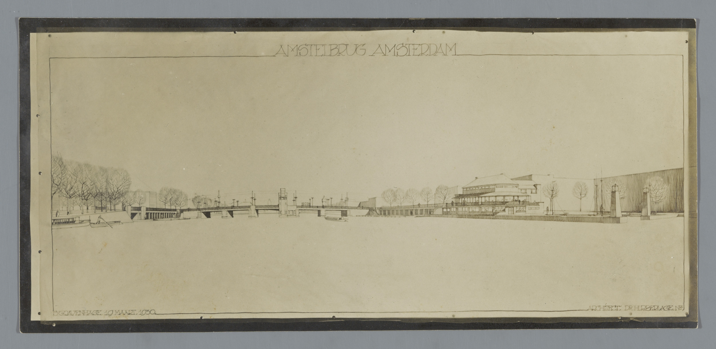 Fotoreproductie van een tekening van de Amstelbrug t...