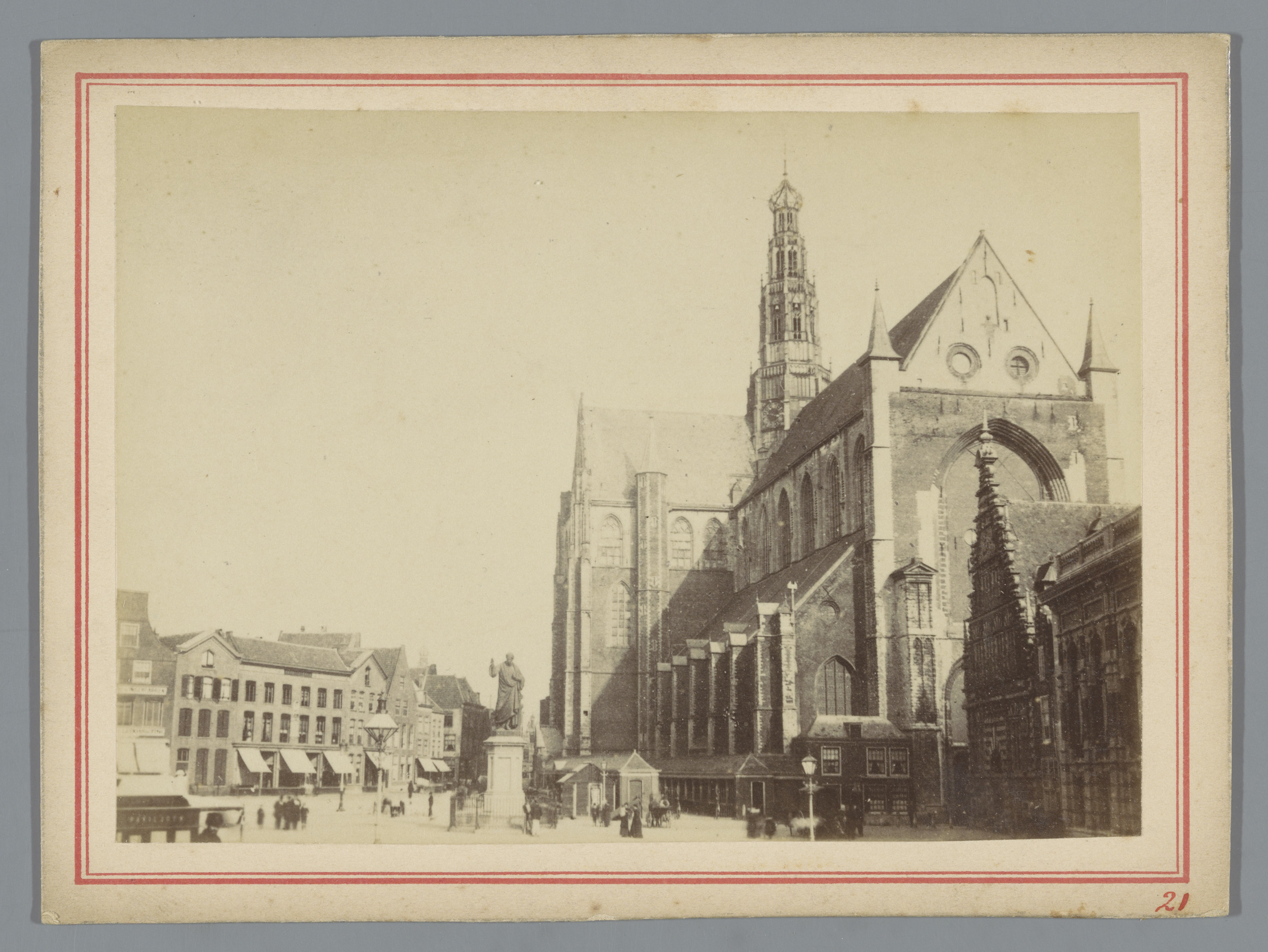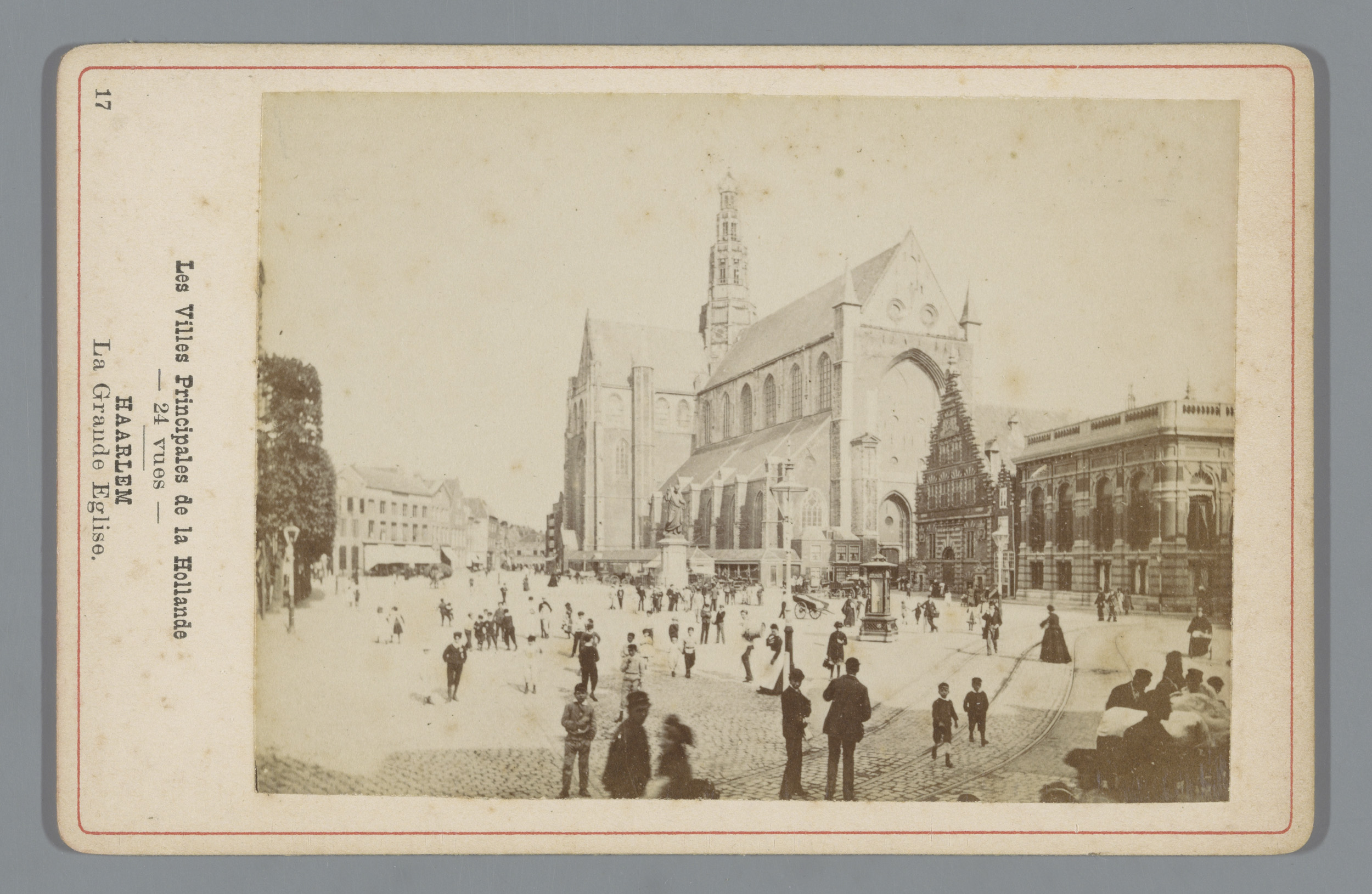 Gezicht op Grote Kerk of Sint-Bavokerk te Haarlem