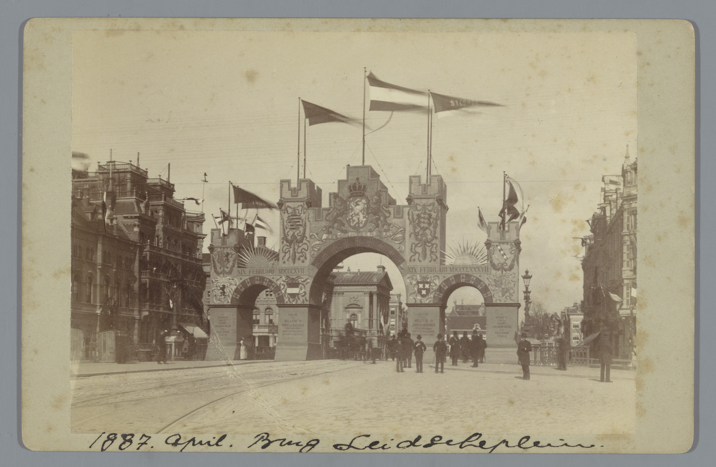 Decoraties op de Leidsebrug ter ere van de zeventigs...