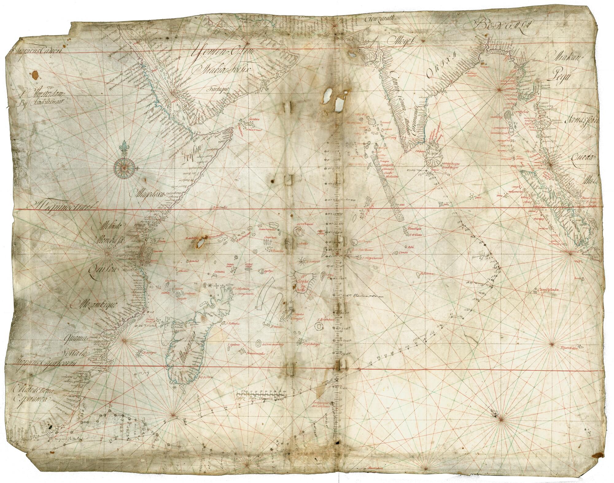 Zeekaart van de Indische Oceaan met de oostkust van ...