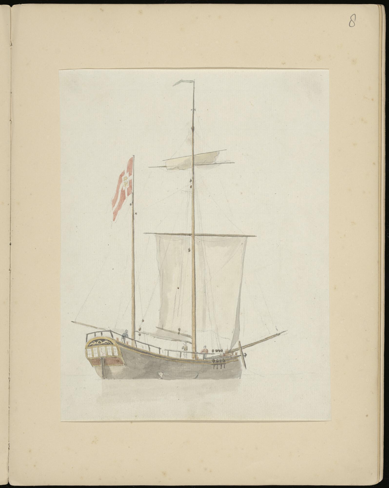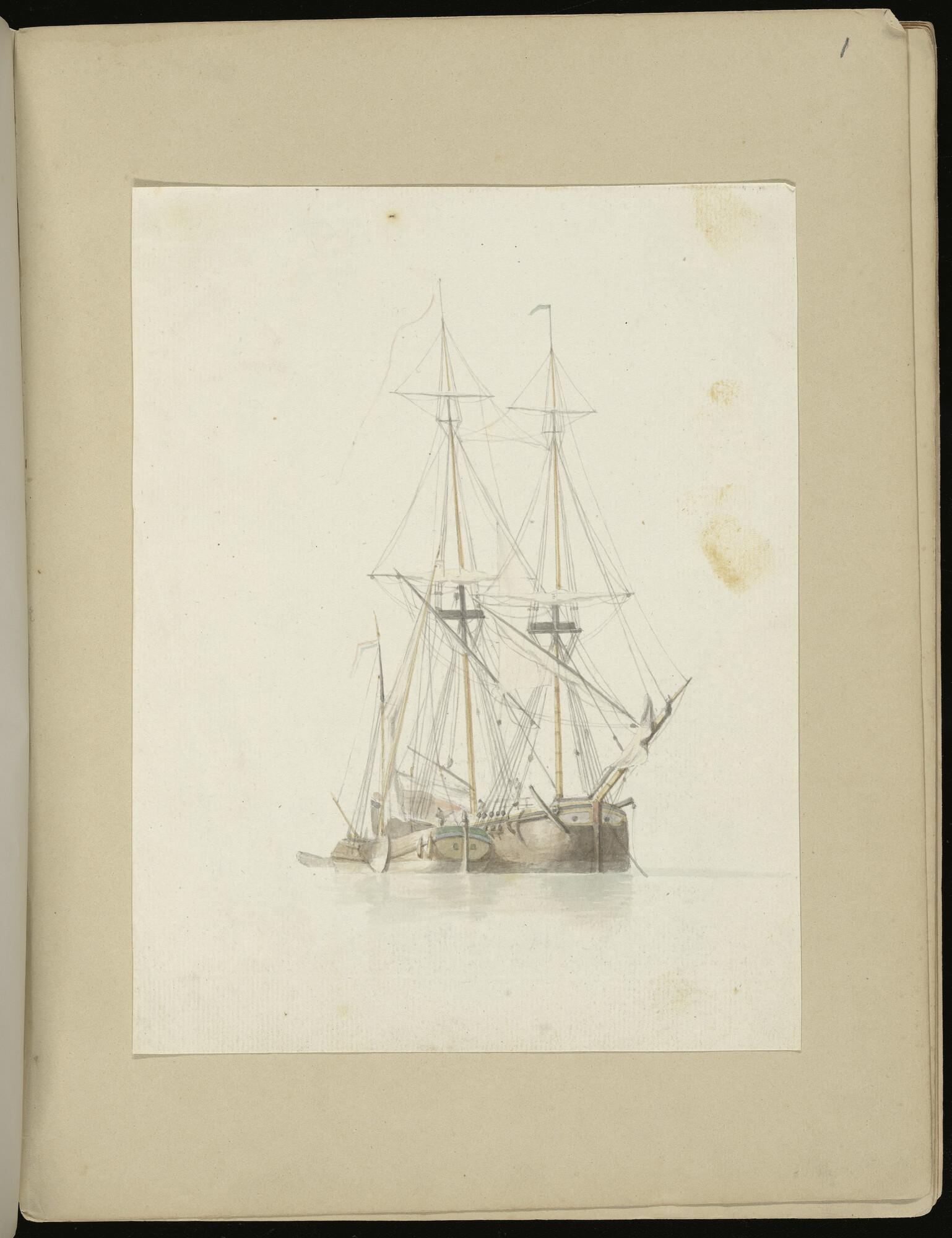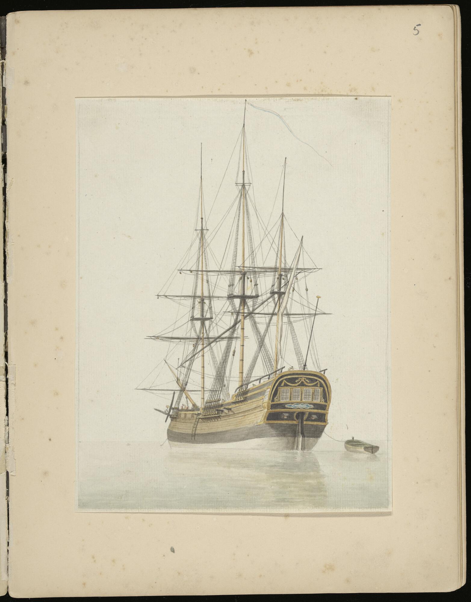Klipperbarkschip: zijaanzicht, vooraanzicht, achtera...