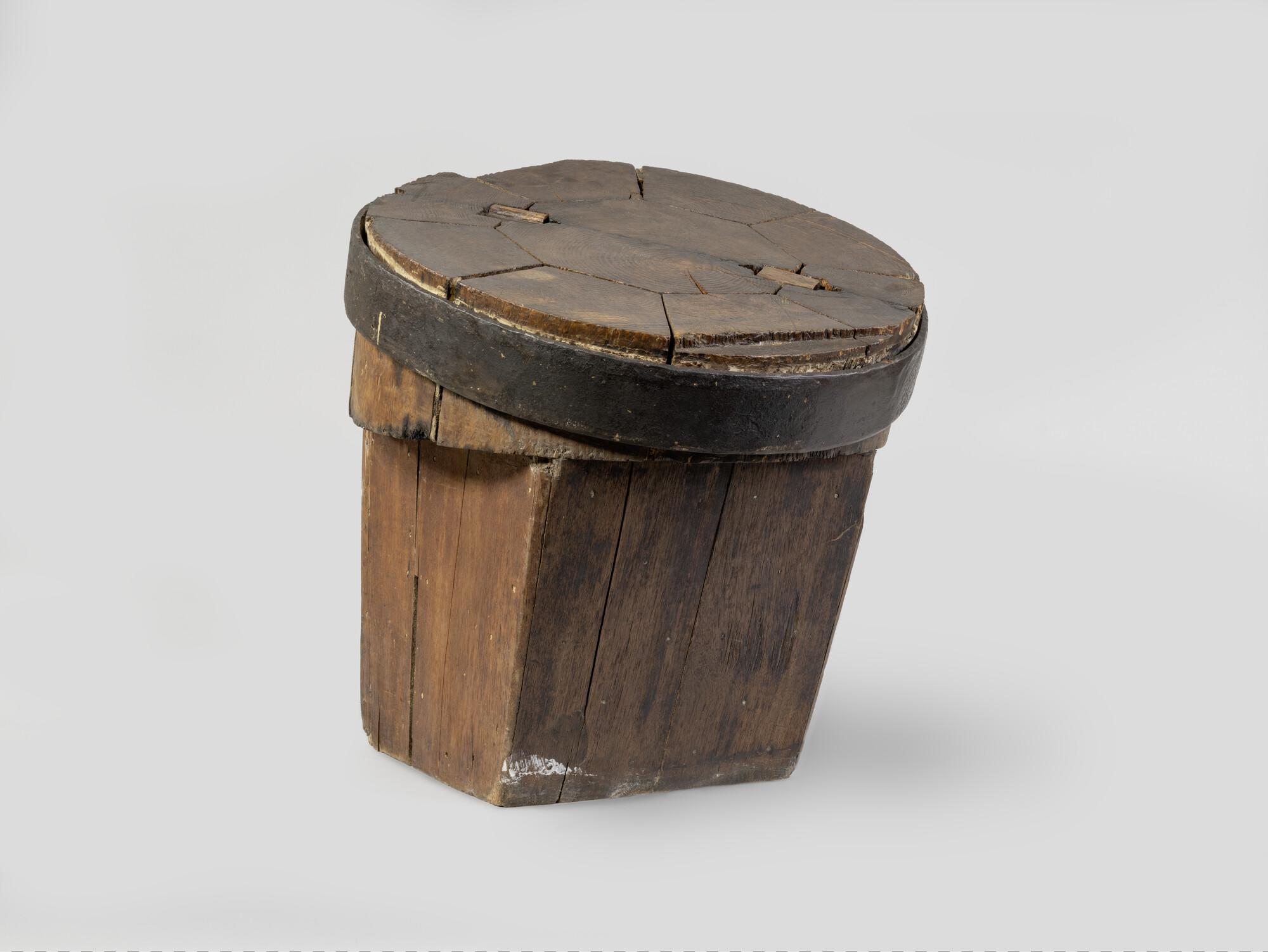 Puttingjuffer, pokhout, met ijzerbeslag, bout en moer