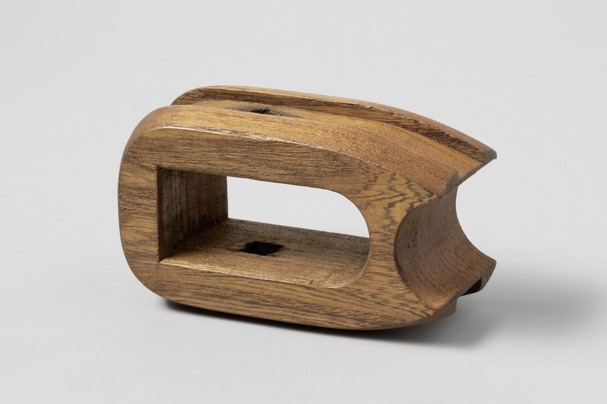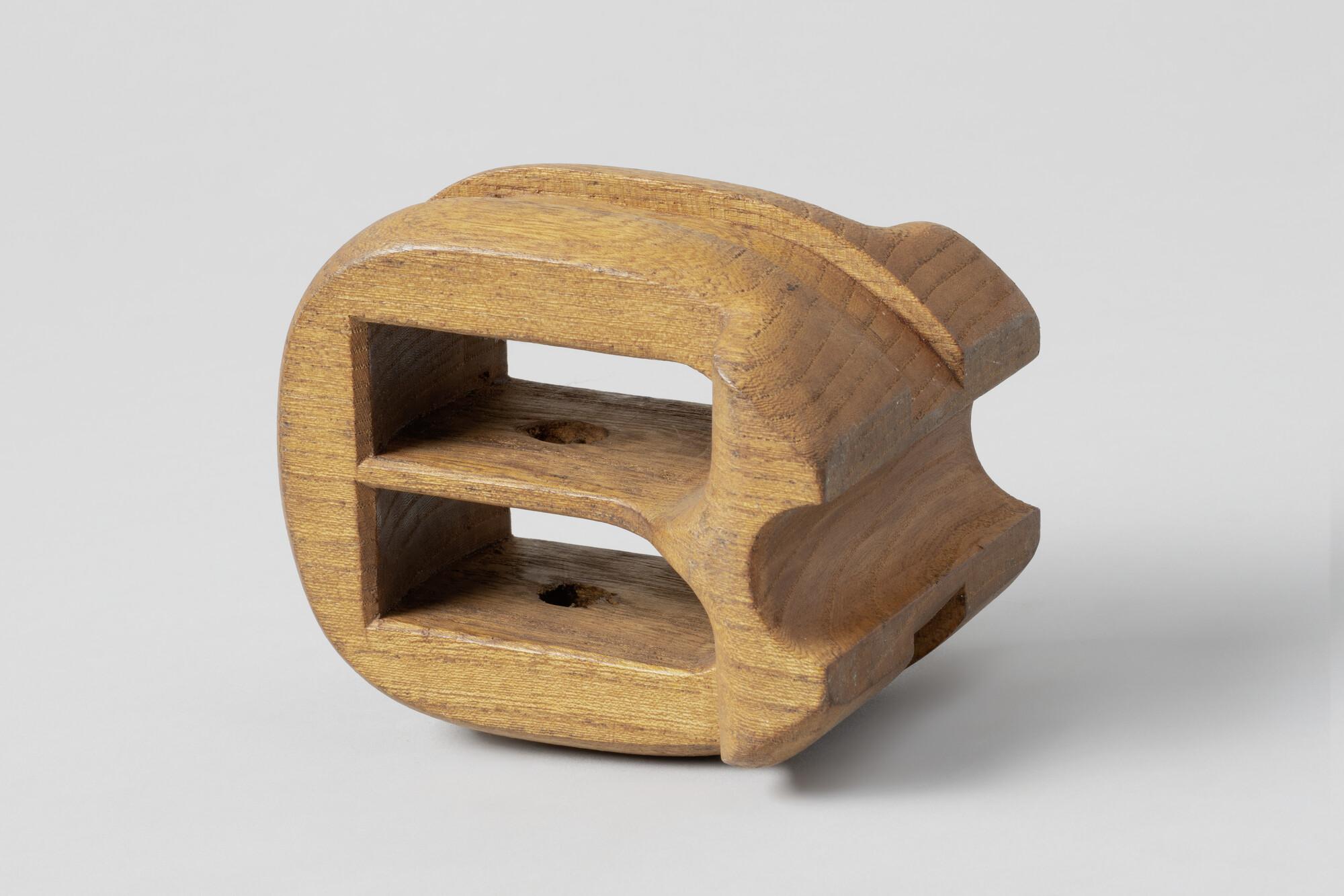 Iepenhouten blok voor bramwant, topeind, met bronzen...