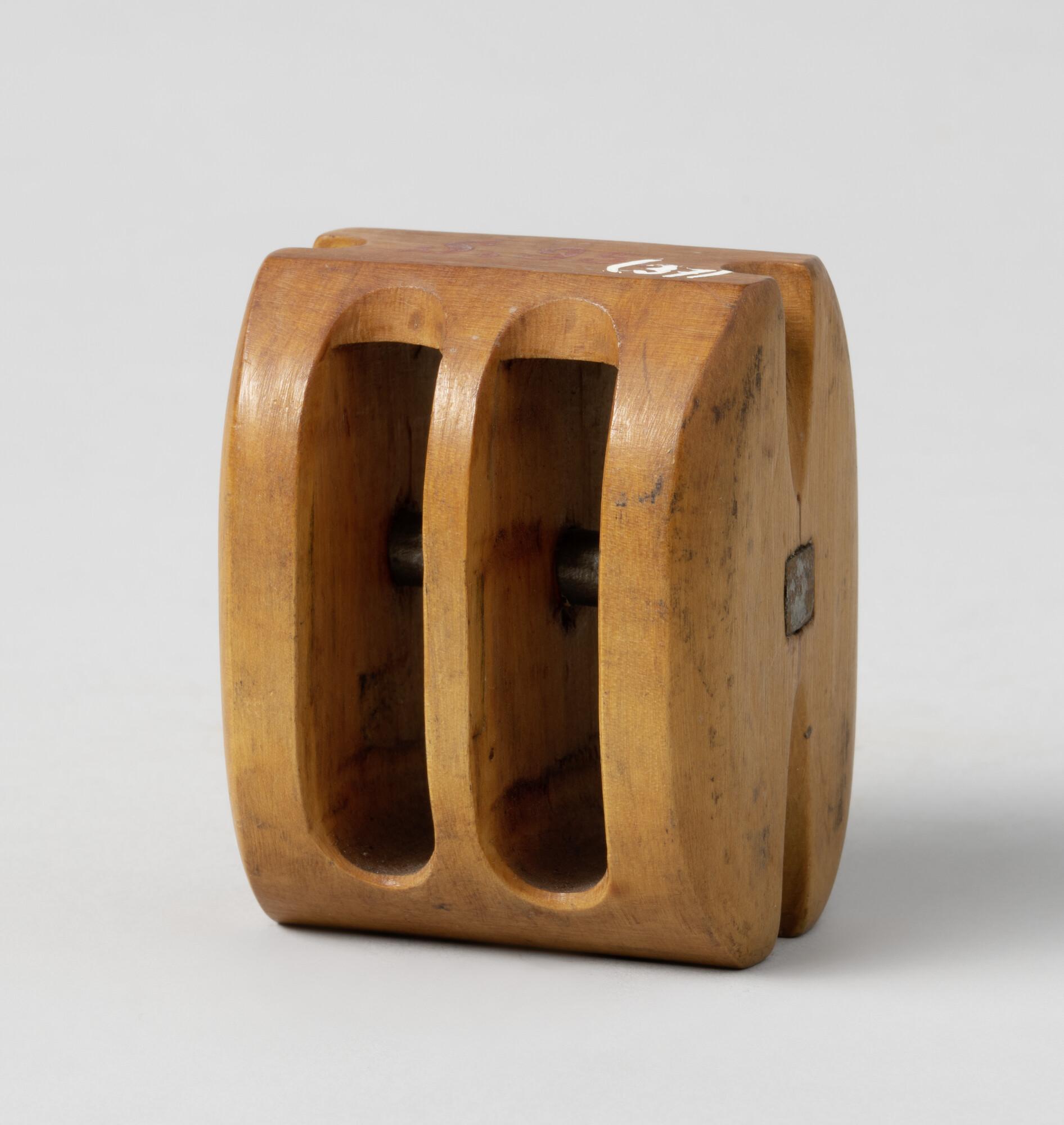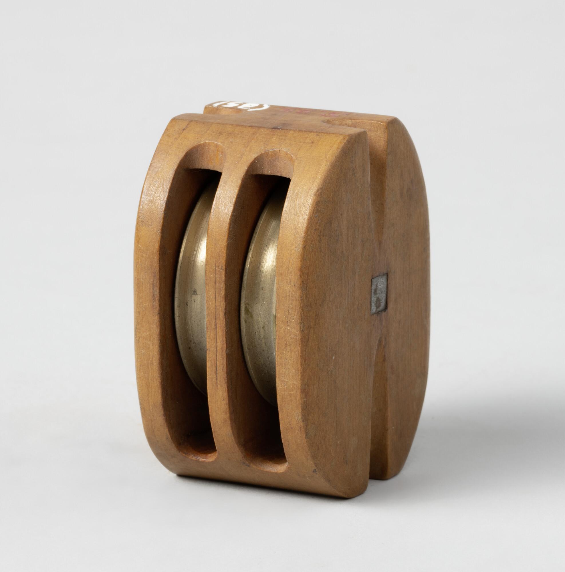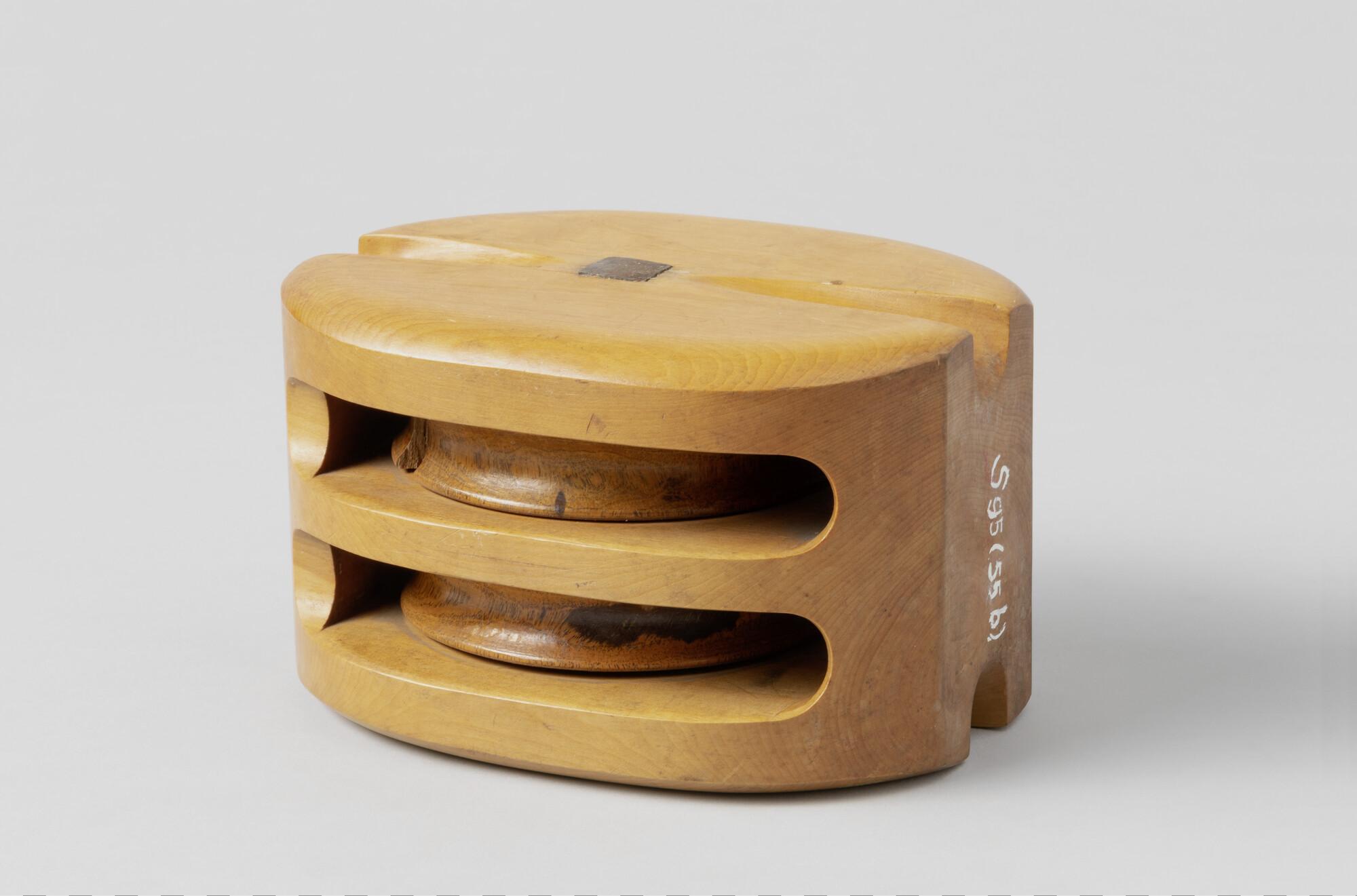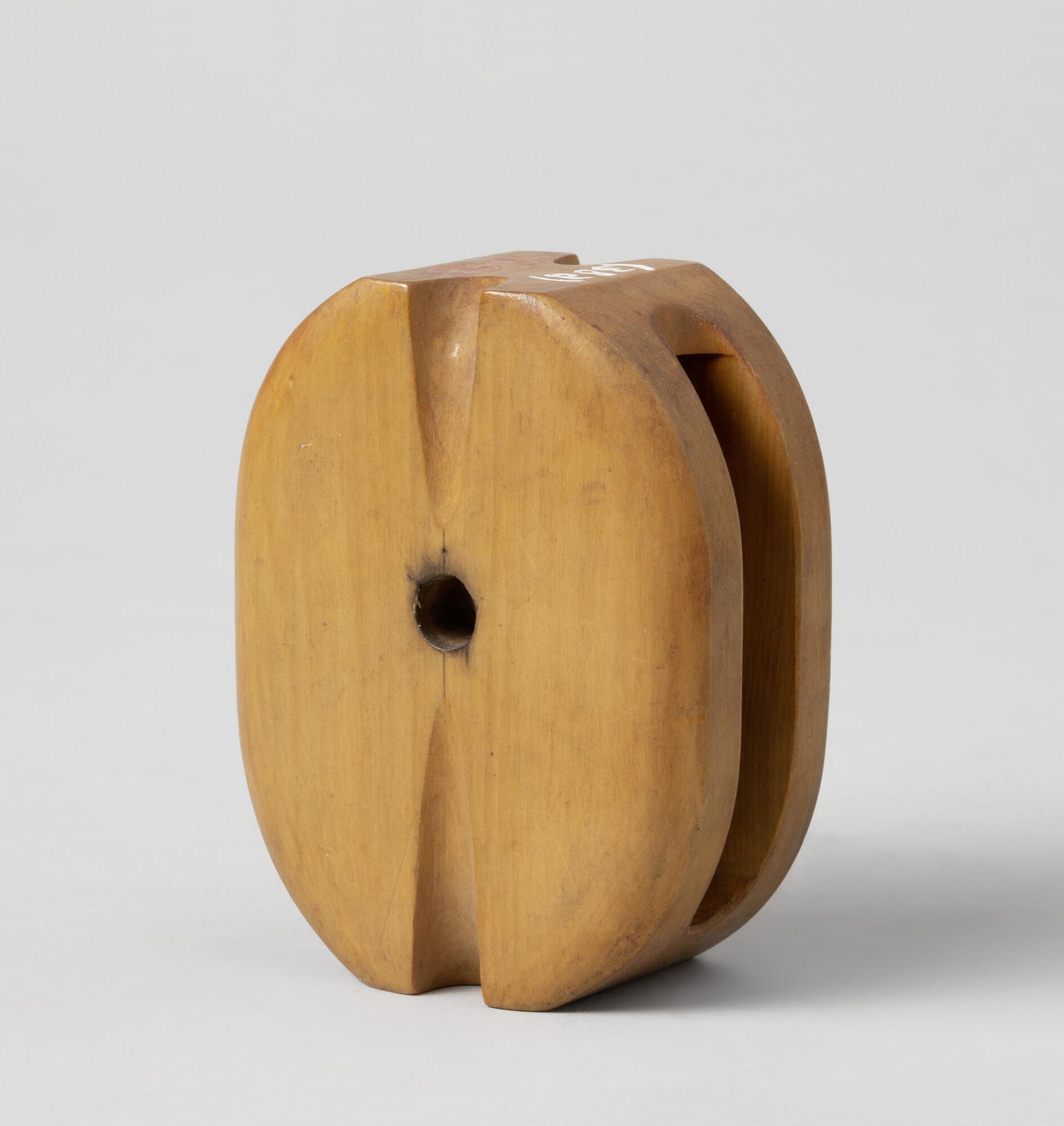 Iepenhouten blok met pokhouten schijven, ijzeren nagel