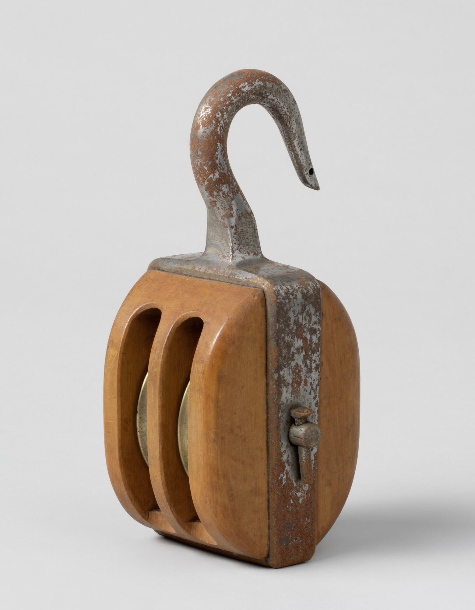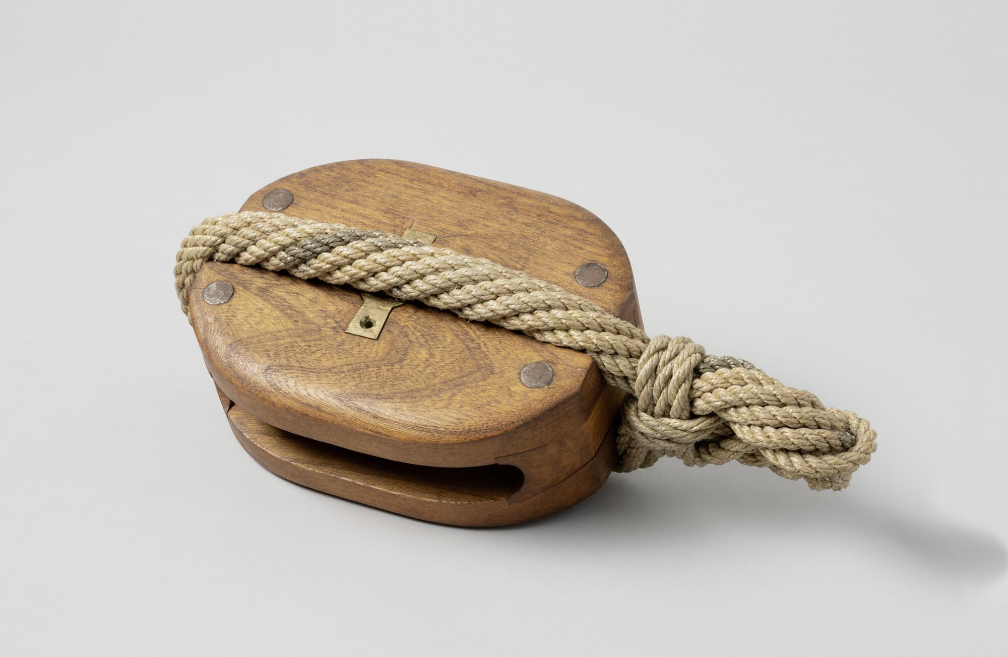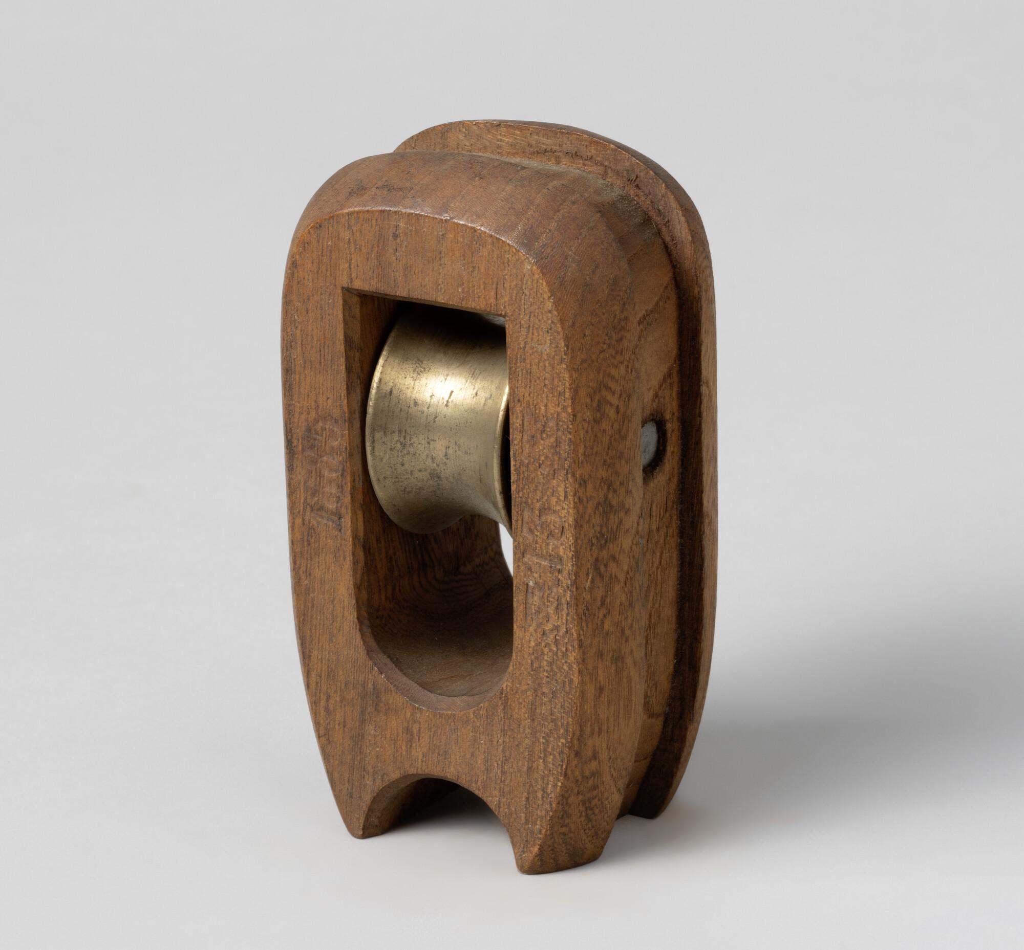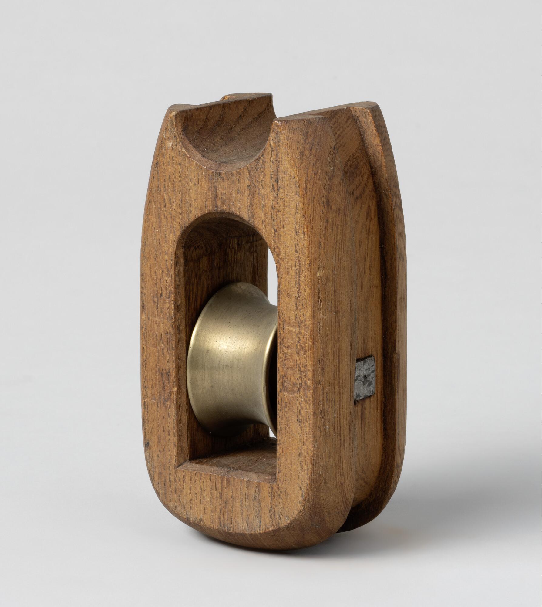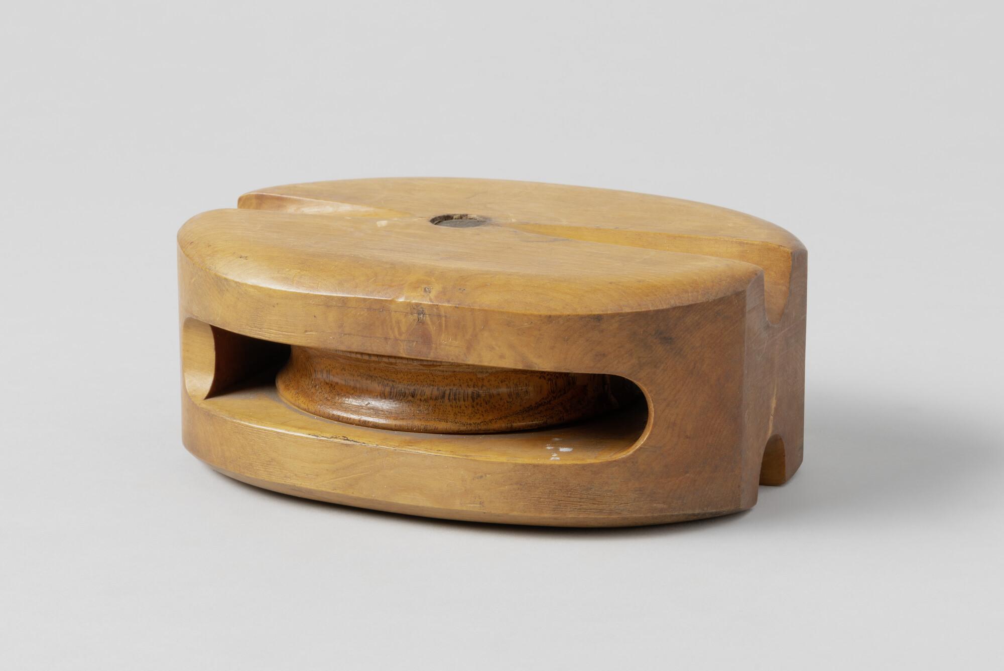 Iepenhouten blok met pokhouten schijven, ijzeren nagel