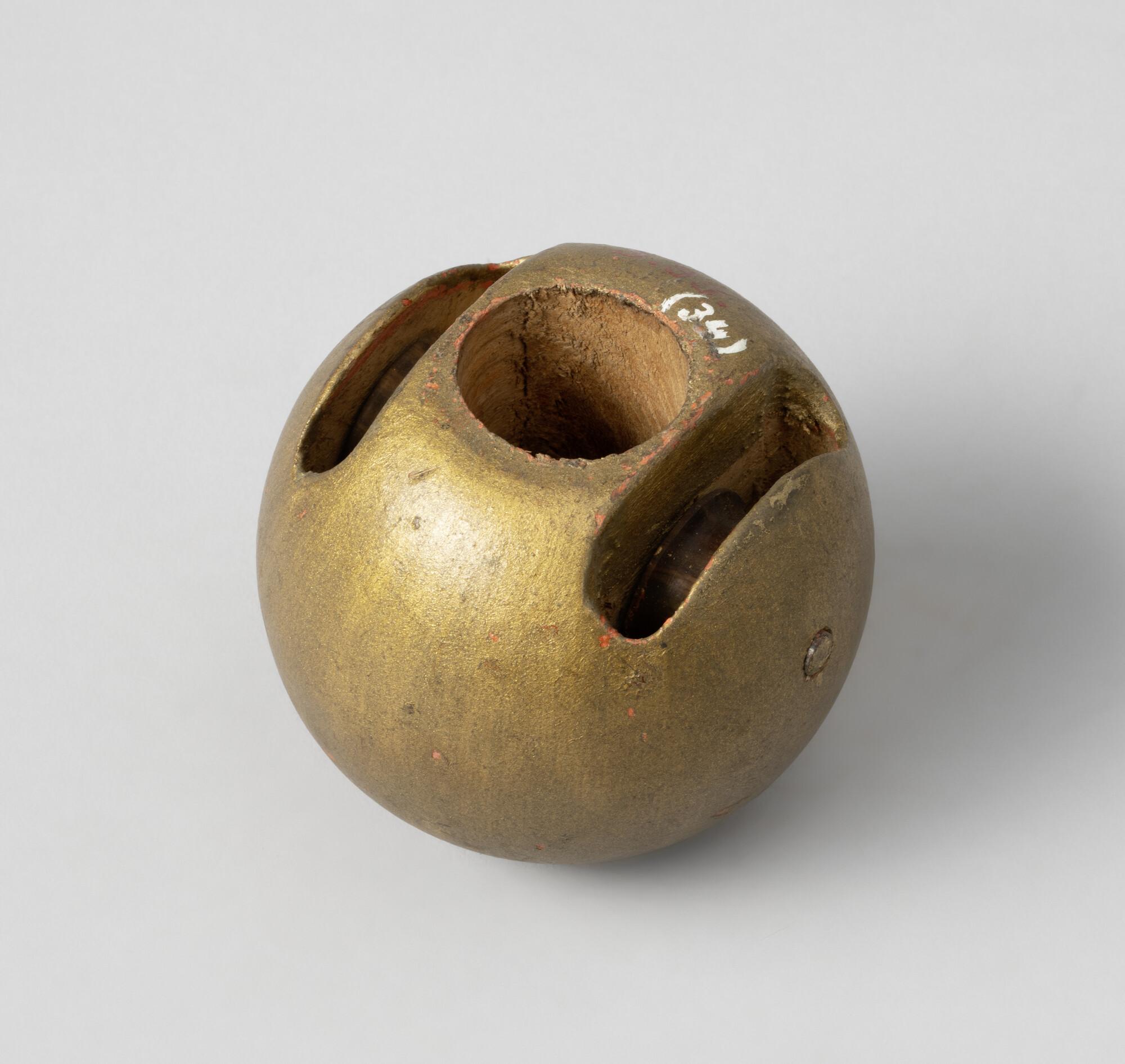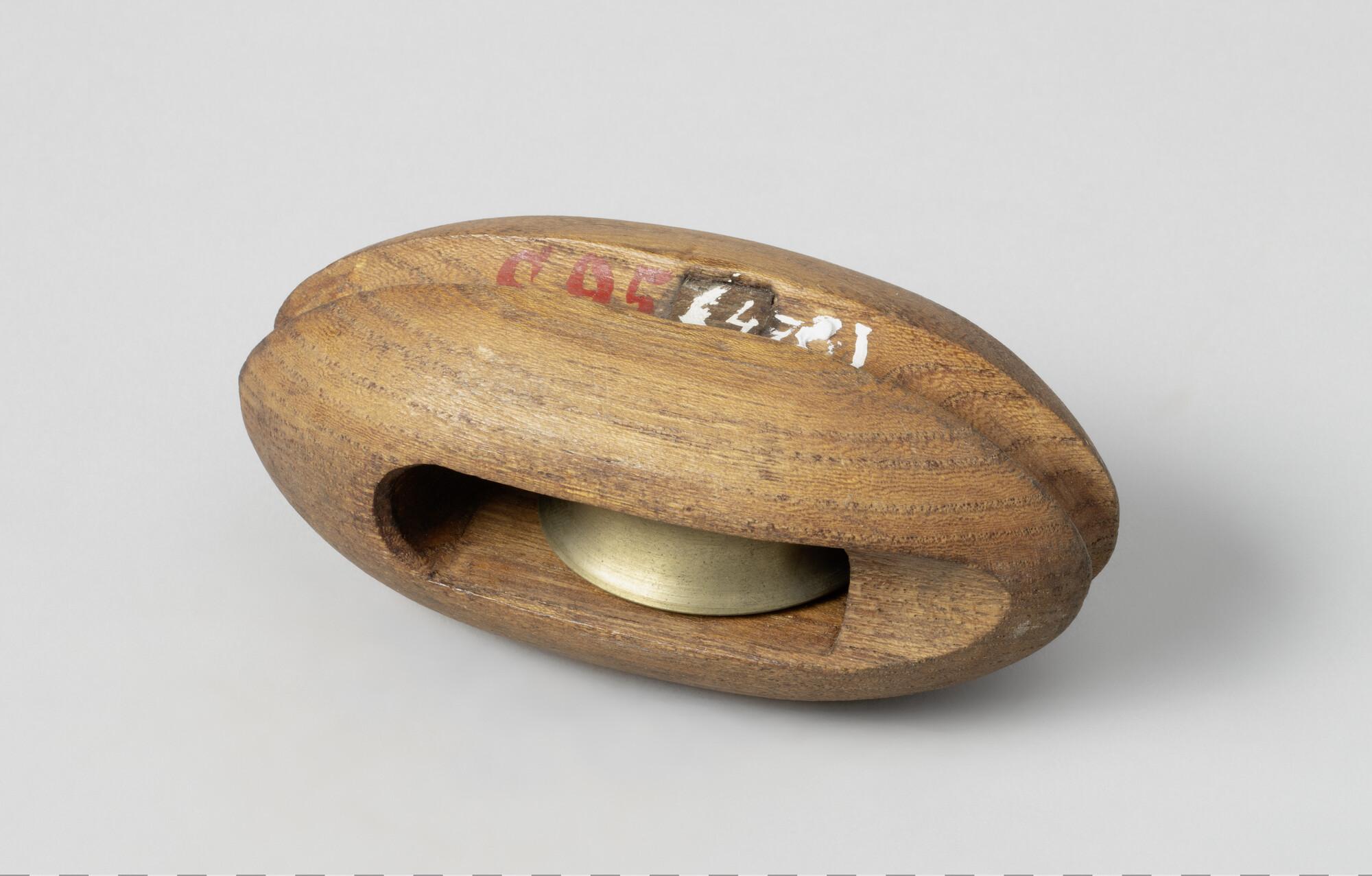 Blok, vruchtboomhout, met twee bronzen schijven, ijz...