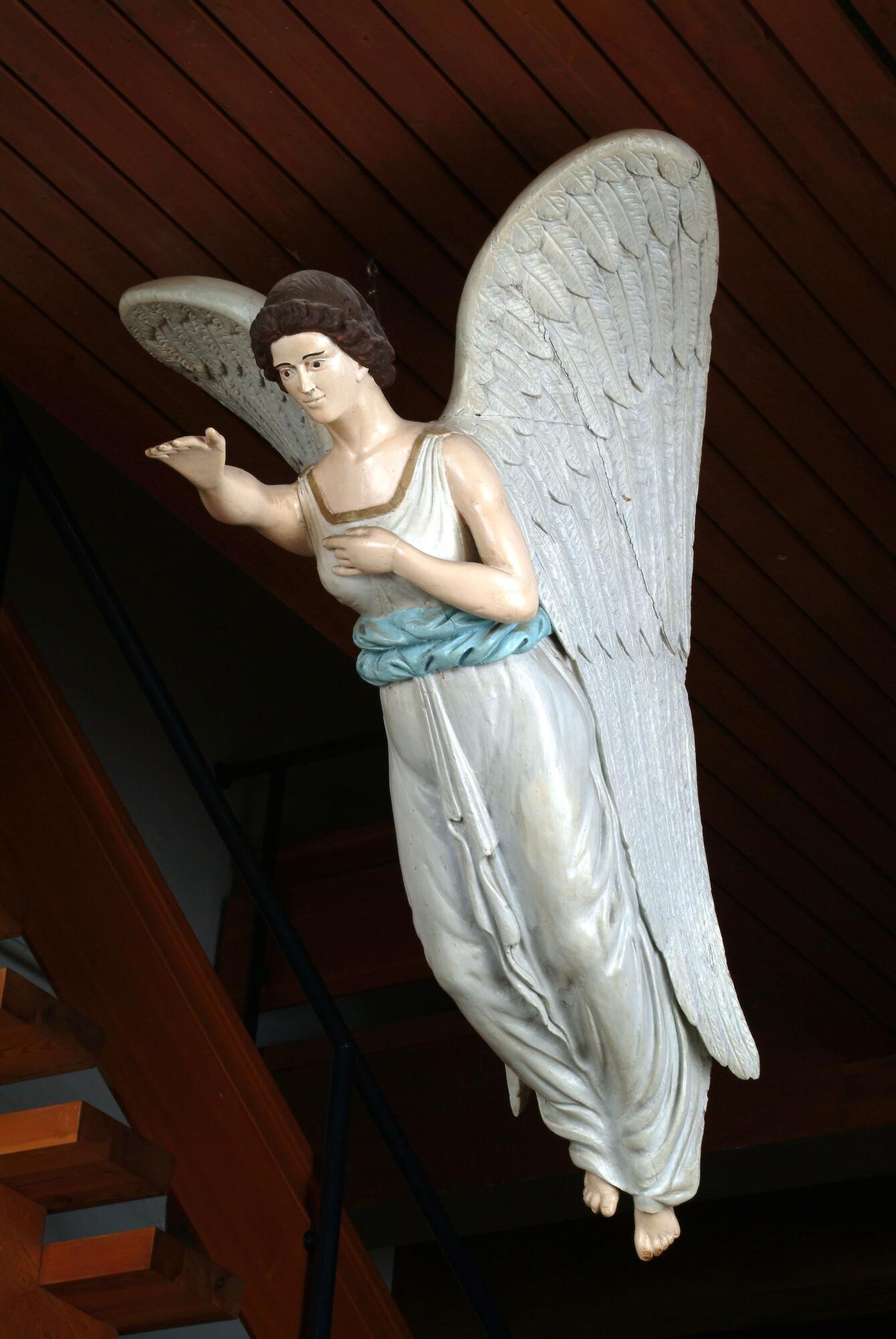 Schegbeeld, voorstellend een engel met gespreide vle...