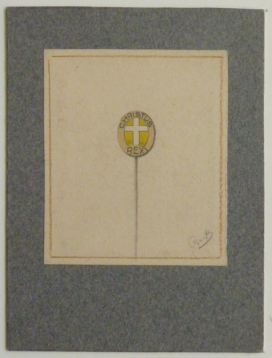 Ontwerp Christus Koning speldje met "Christus Rex" o...
