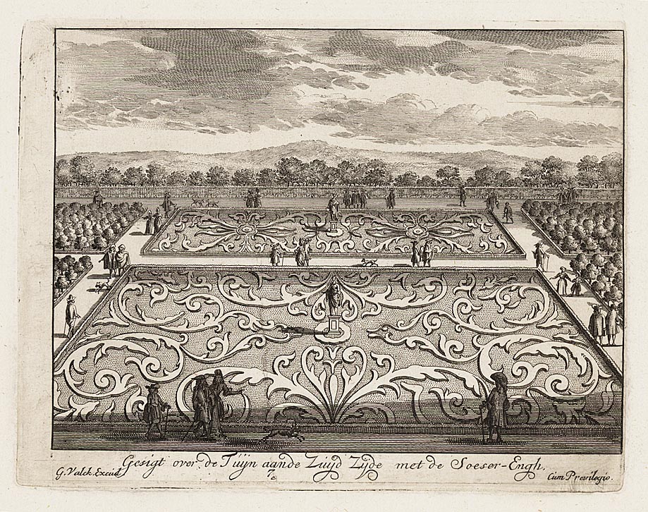 Gesigt over de Tuijn aan de Zuijd Zijde, met de Soes...