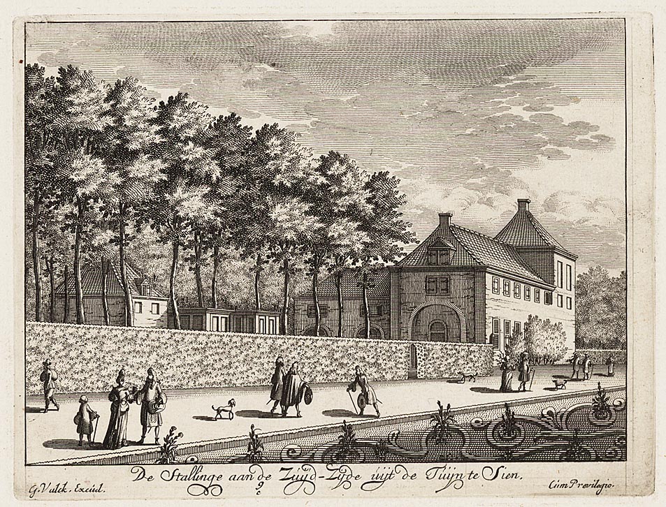 De Stallinge aan de Zuijdzijde uijt de tuijn te sien