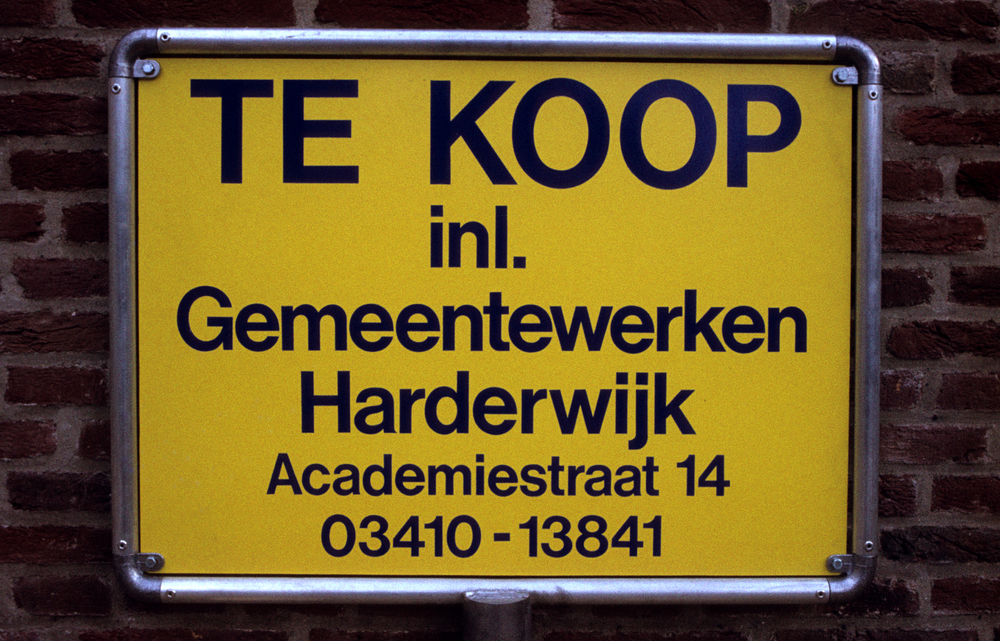Een te koop-bord van Gemeentewerken aan de gevel van...