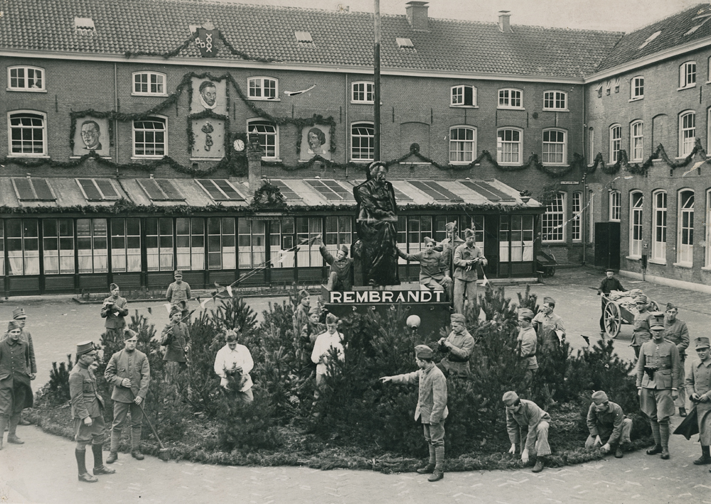 Versierde binnenplaats van de Oranje Nassau kazerne,...