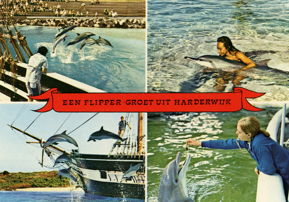 Prentbriefkaart, getiteld 'Een flipper-groet uit Har...