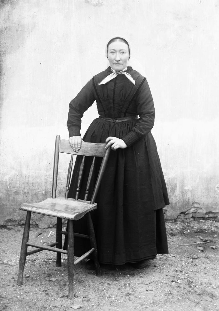 Portret van een Veluwse boerin in donkere kleding