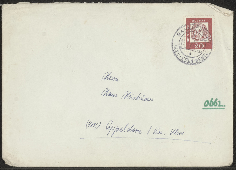 Cremekleurige envelop aan Hans Heistrüvers