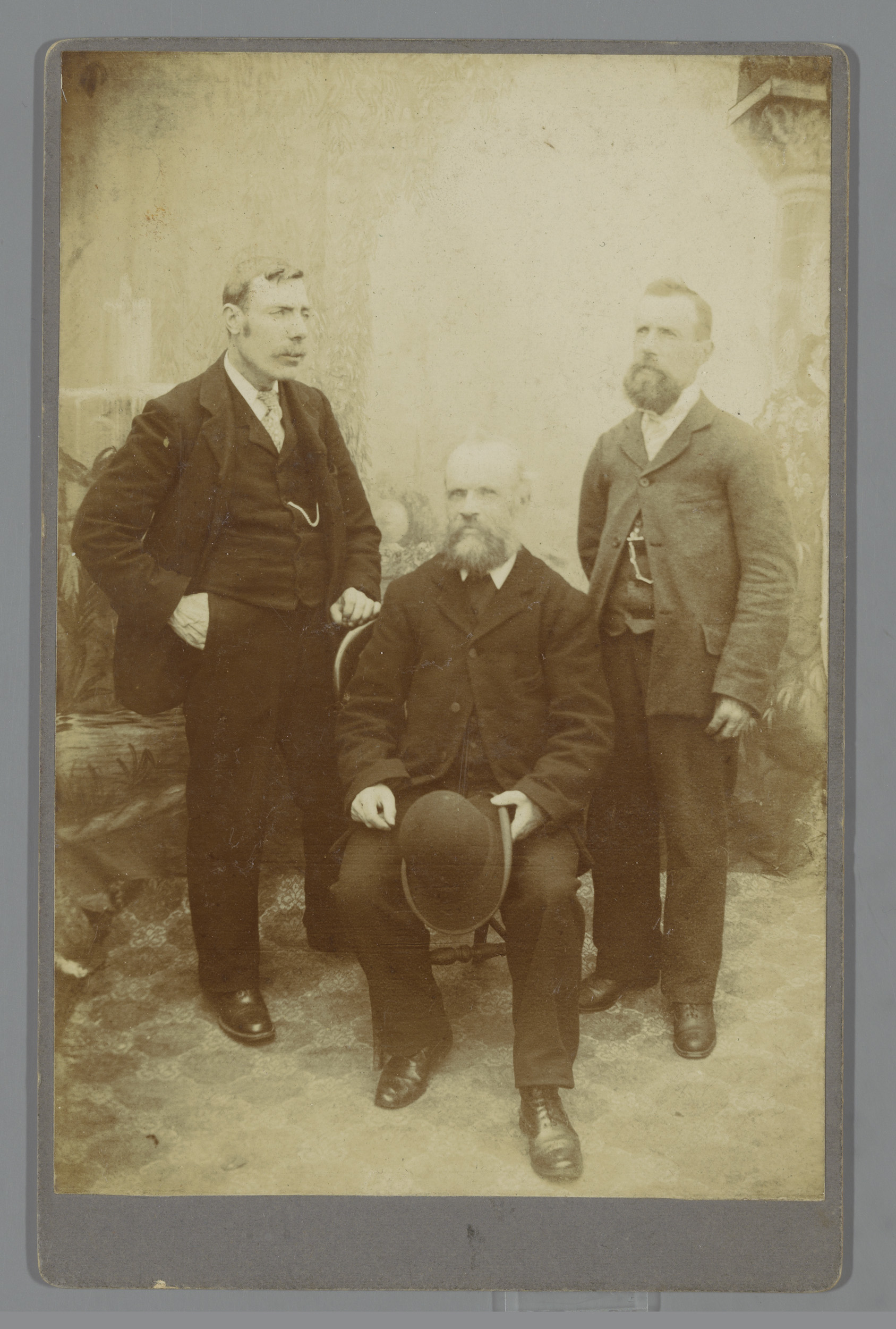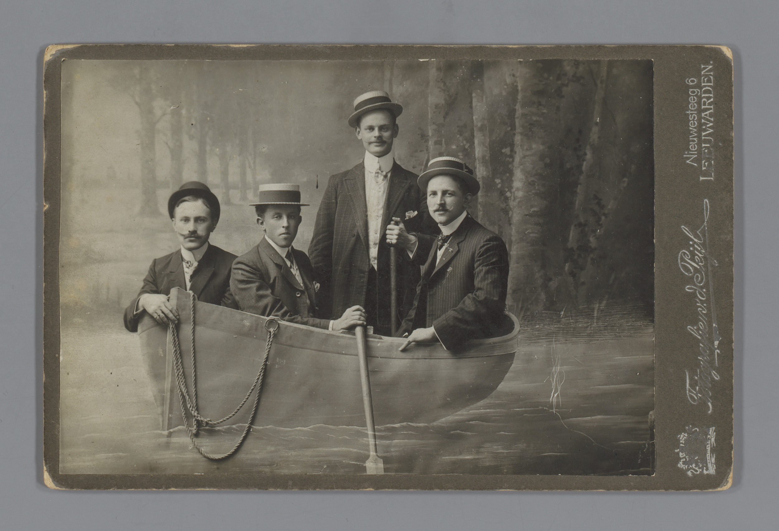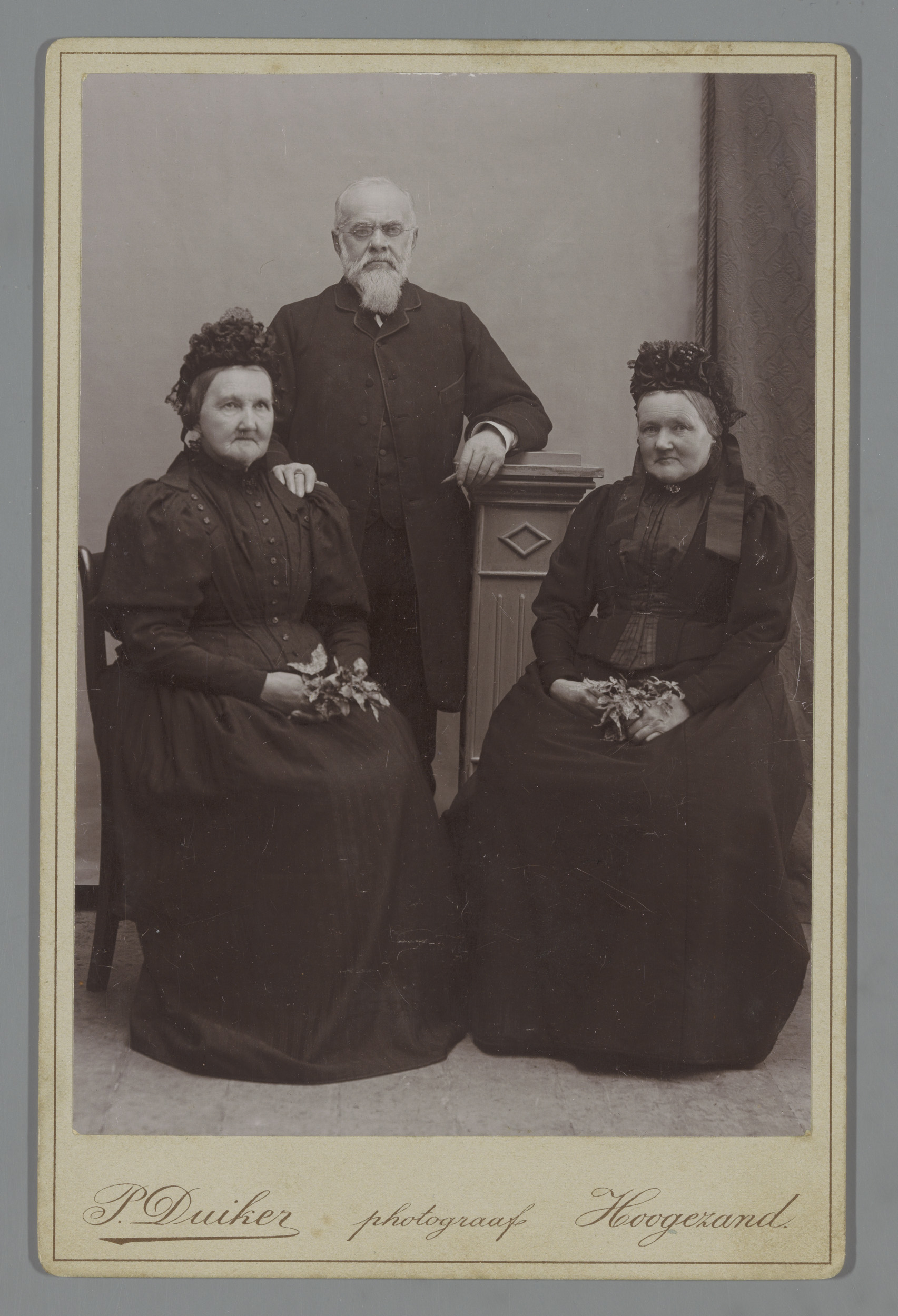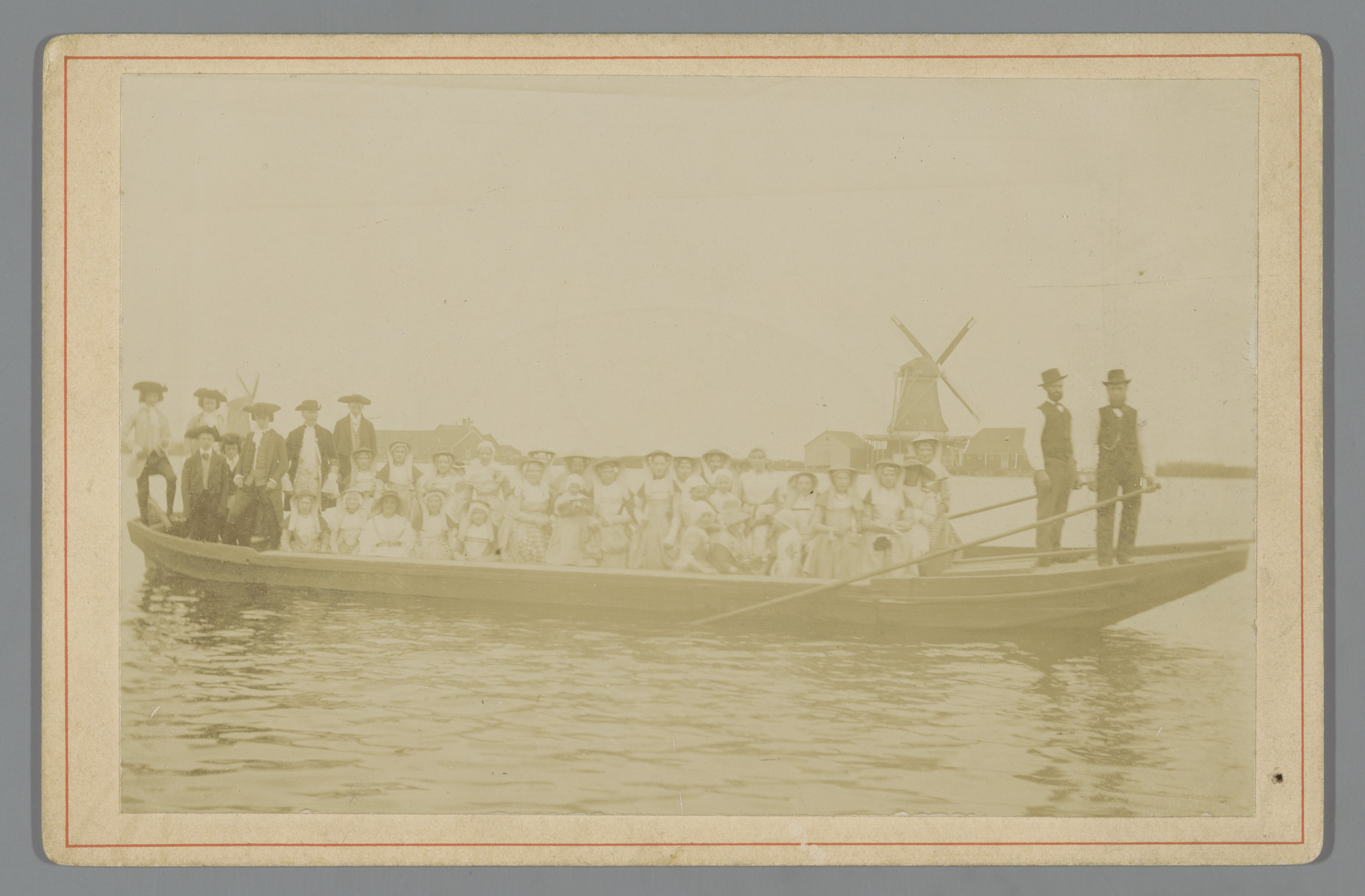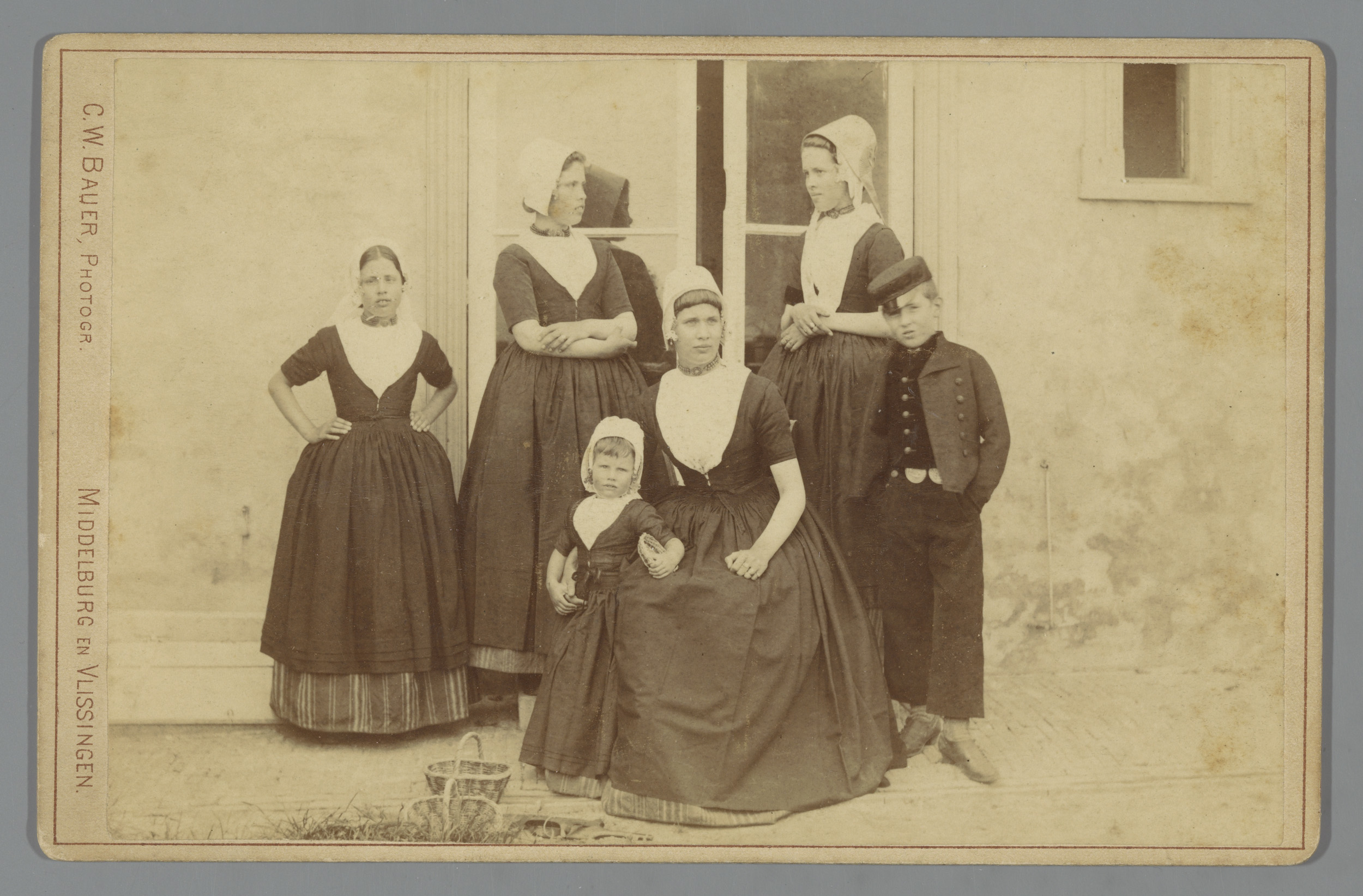 Groepsportret van mannnen en vrouwen in klederdracht...