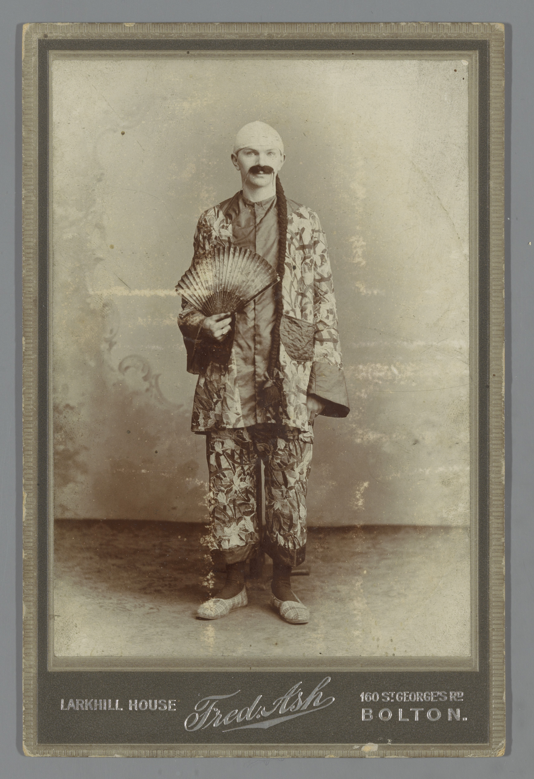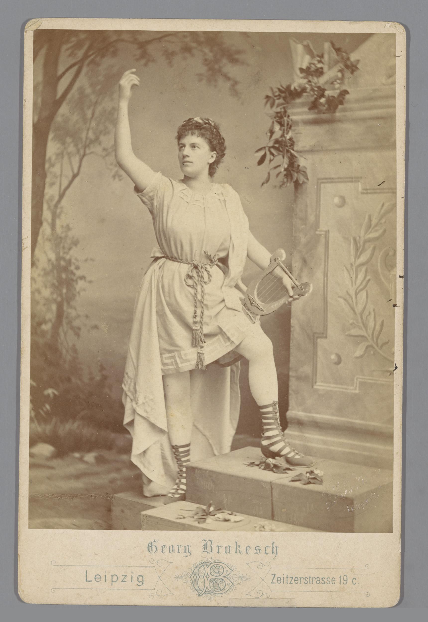 Portret van een onbekende vrouw in carnavalskostuum ...