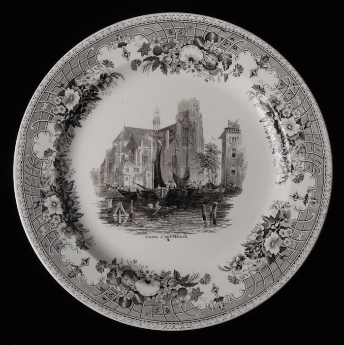 Keramieken bord met afbeelding Laurenskerk, Rotterdam