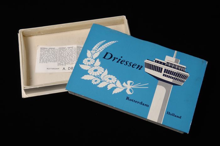 Blauwe bonbondoos met afbeelding Euromast en "Driess...