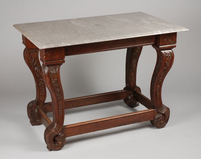 Eikenhouten Hollandse Régence wandtafel met marmeren...