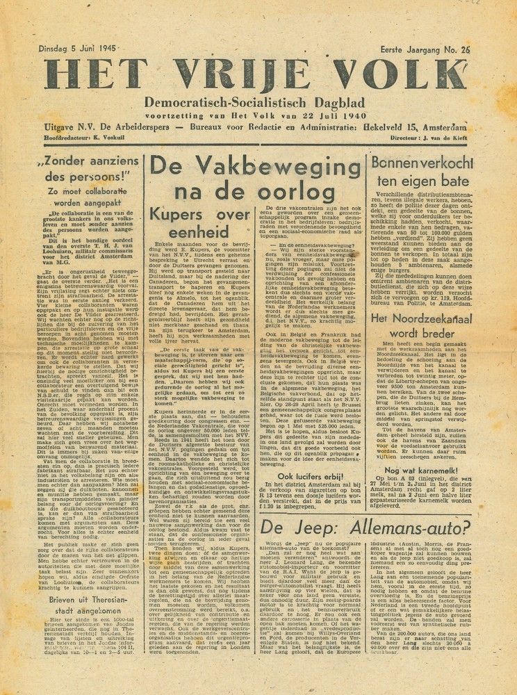 Het Vrije Volk, woensdag 5 juni 1945, eerste jaargan...