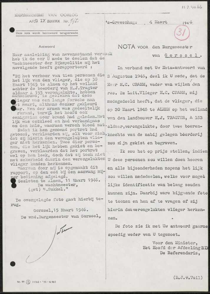 Rapport Gemeente Gorssel, 31 juli 1945..