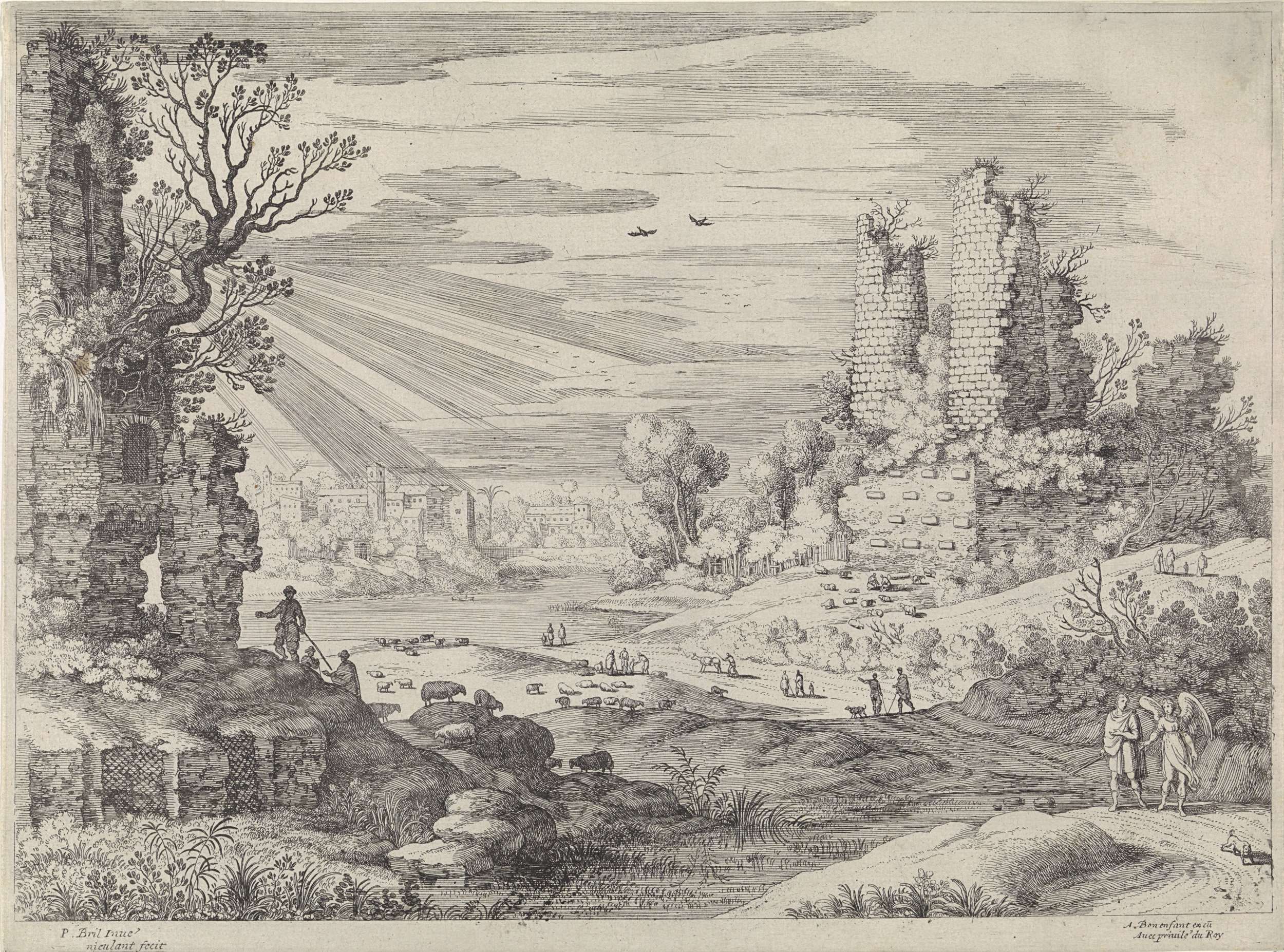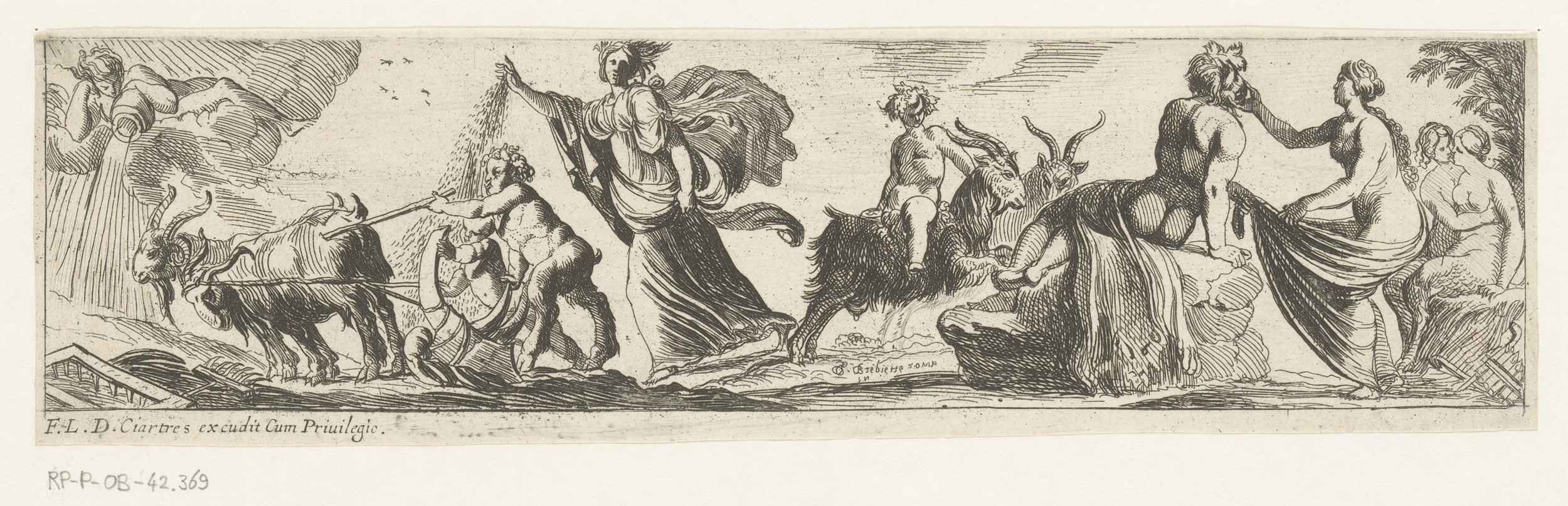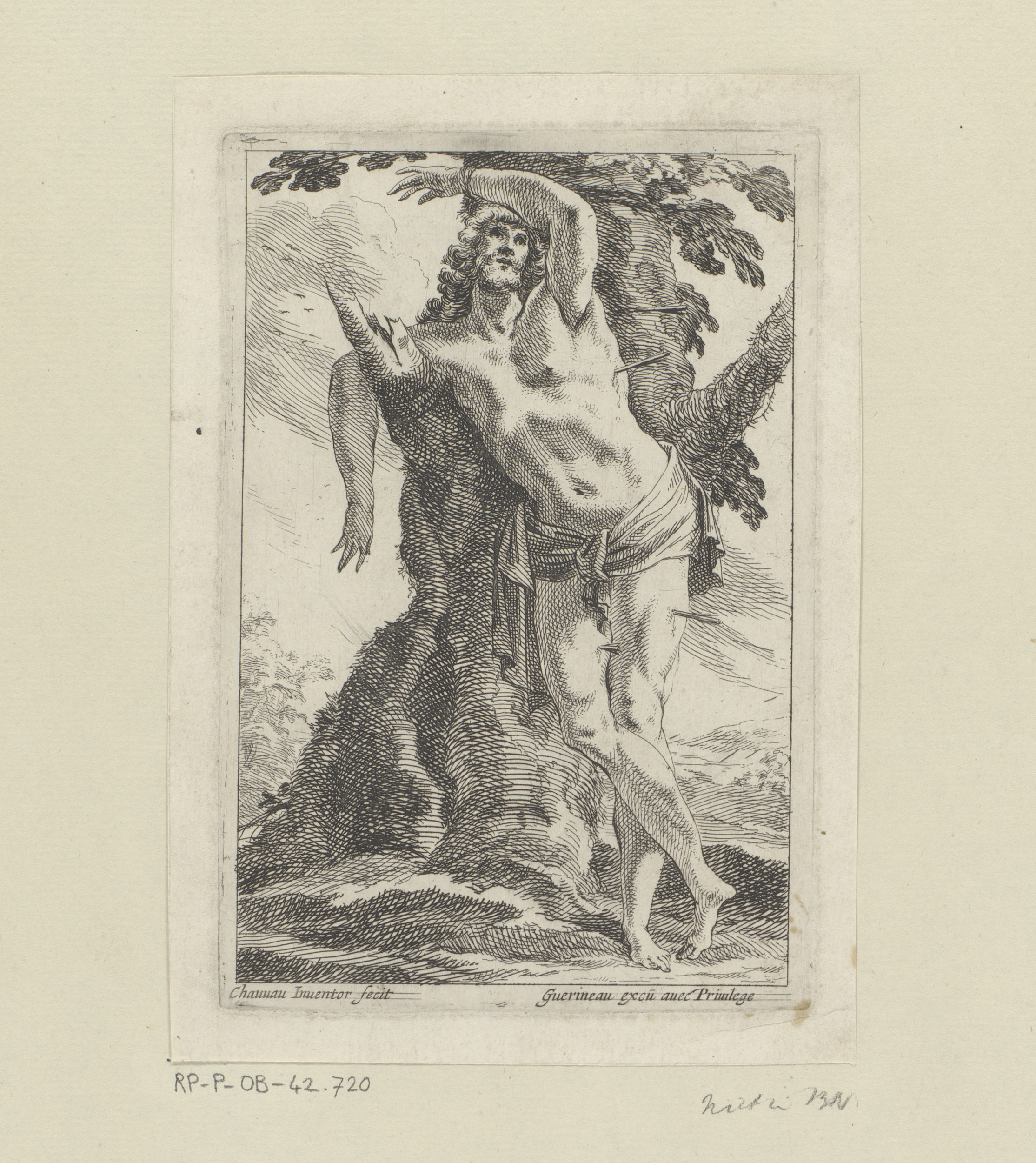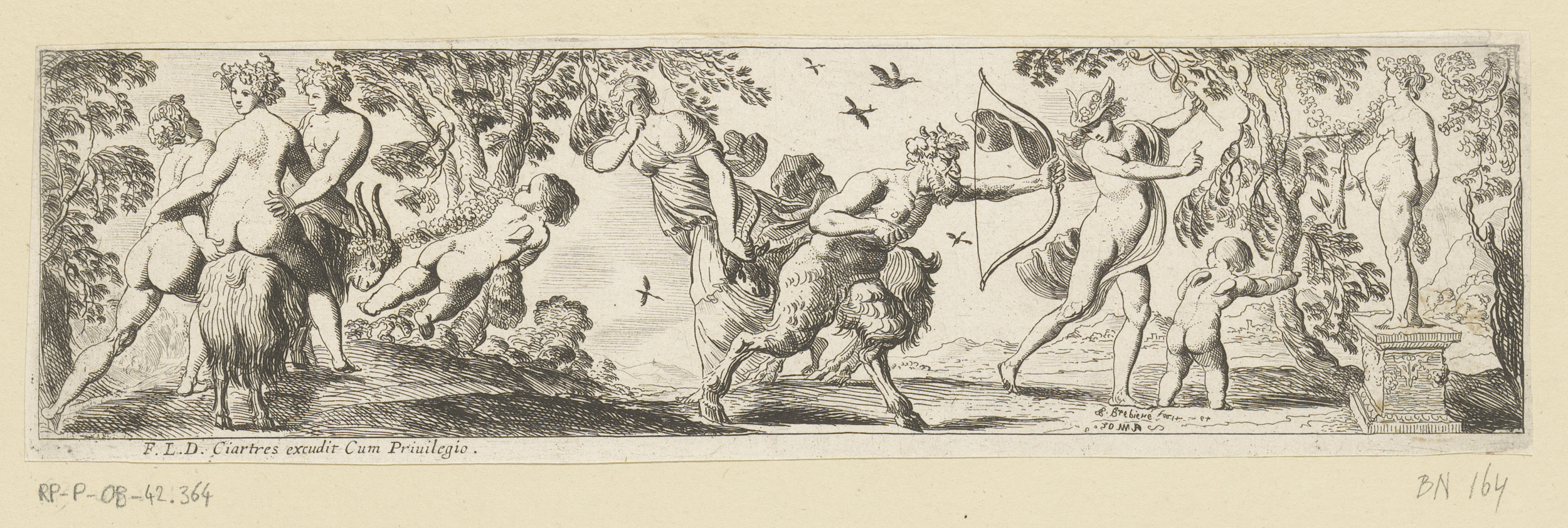 Sater schiet een pijl op een beeld van Bacchus terwi...
