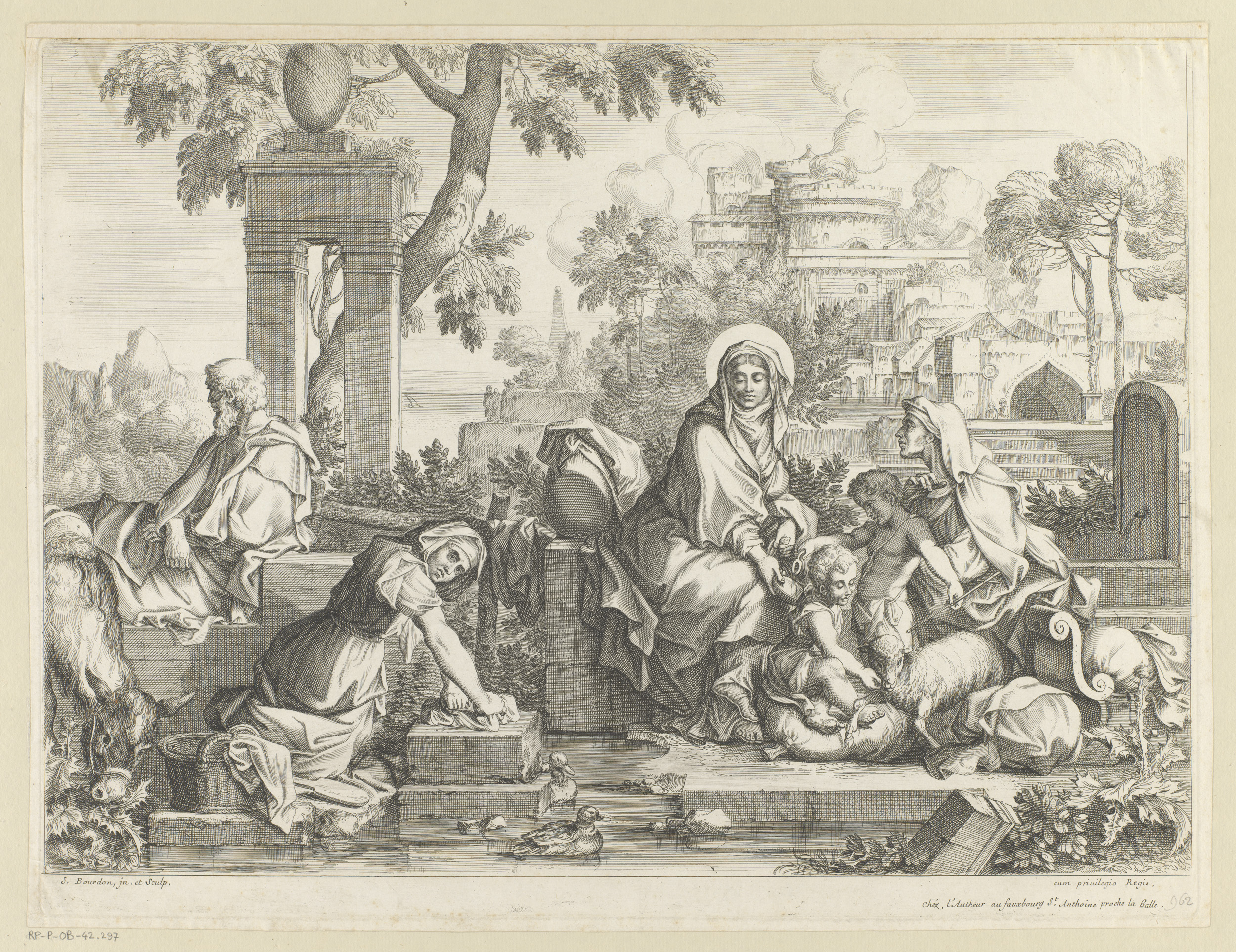 Heilige Familie bij de wasplaats met Elizabeth en Jo...