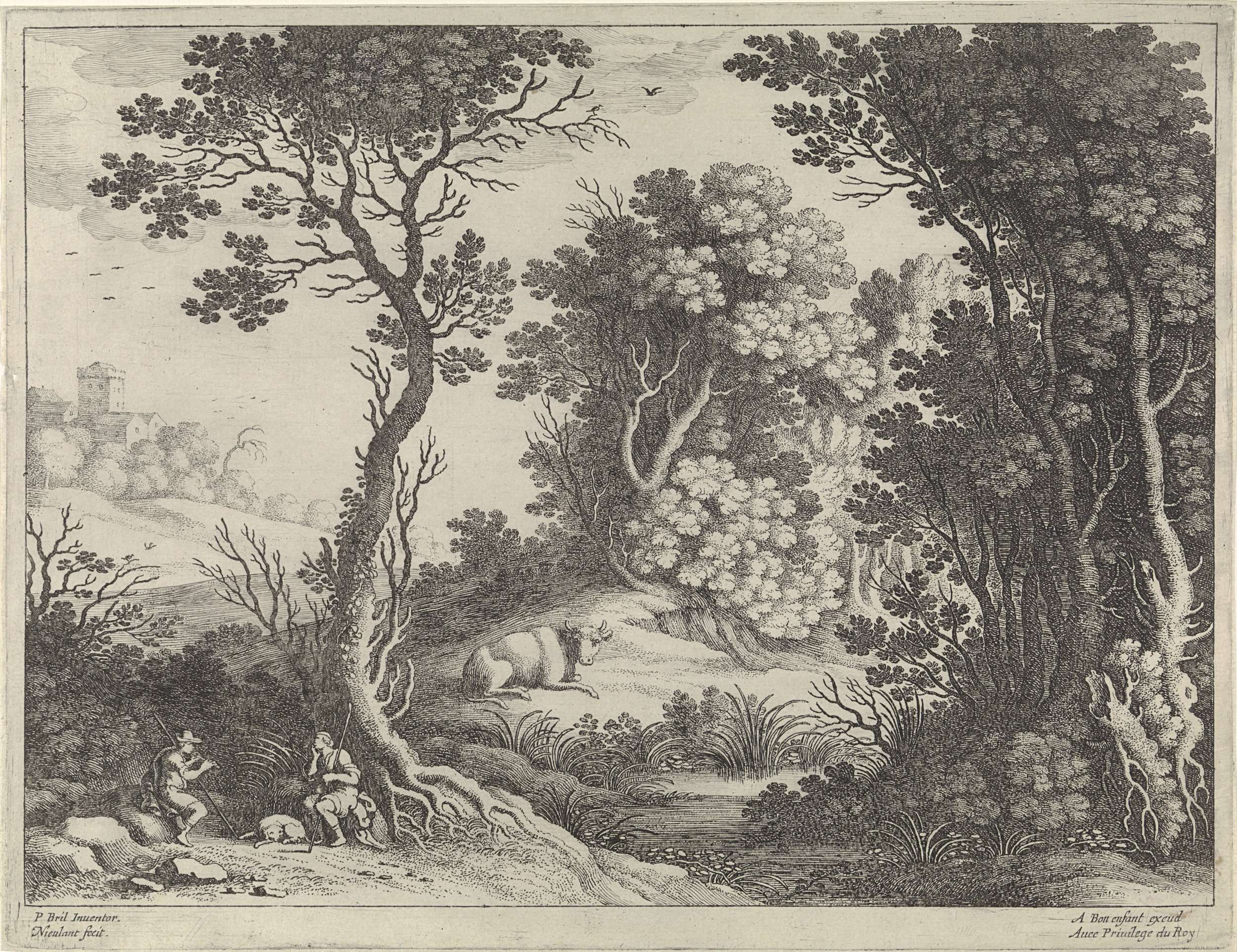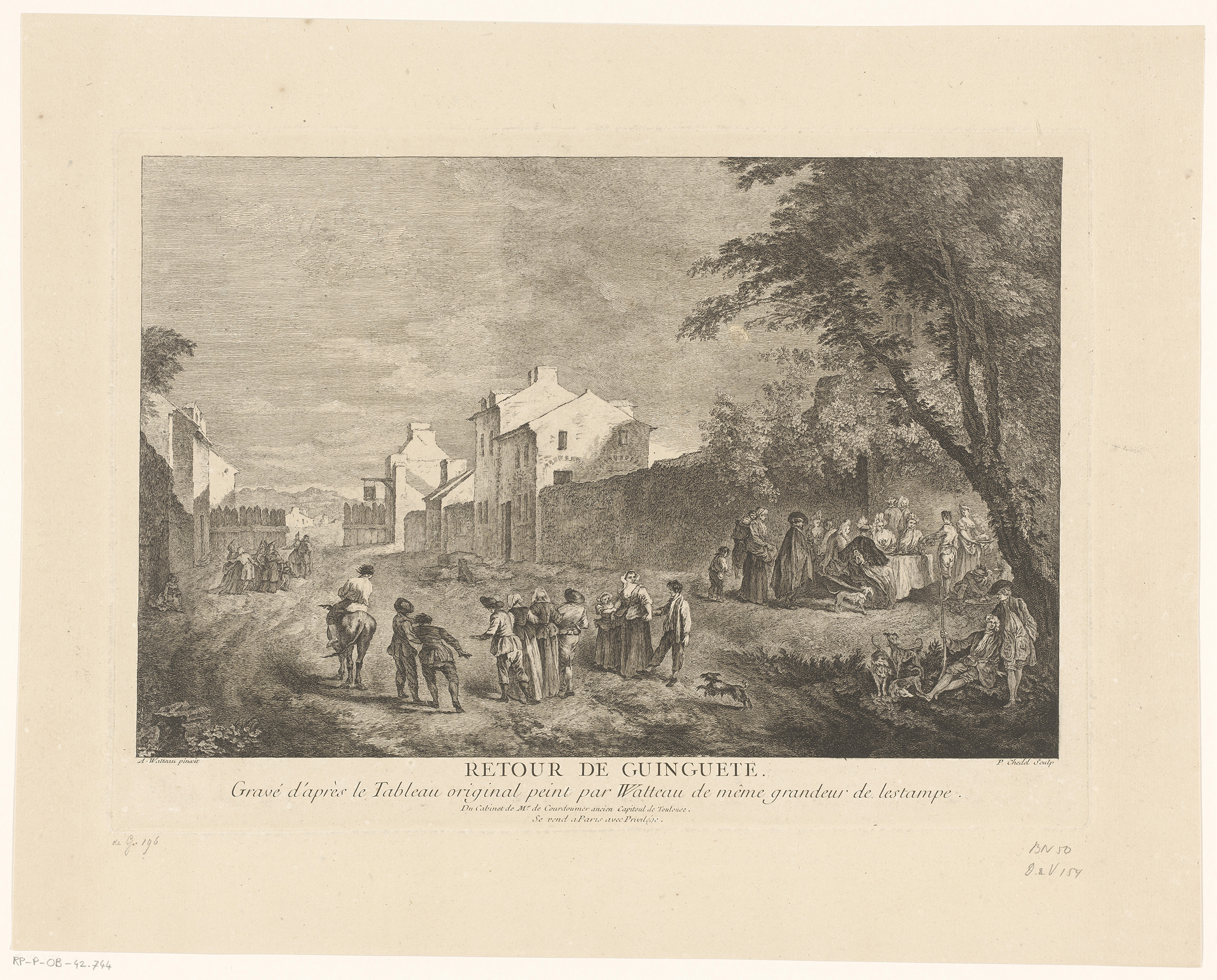 Koppel onder een boom met Pierrot aan hun voeten en ...