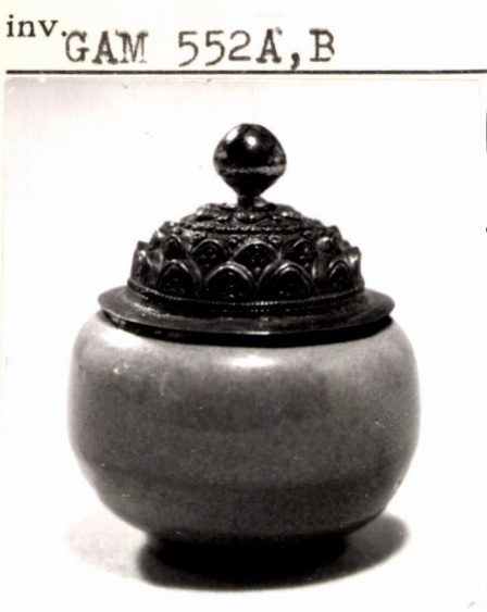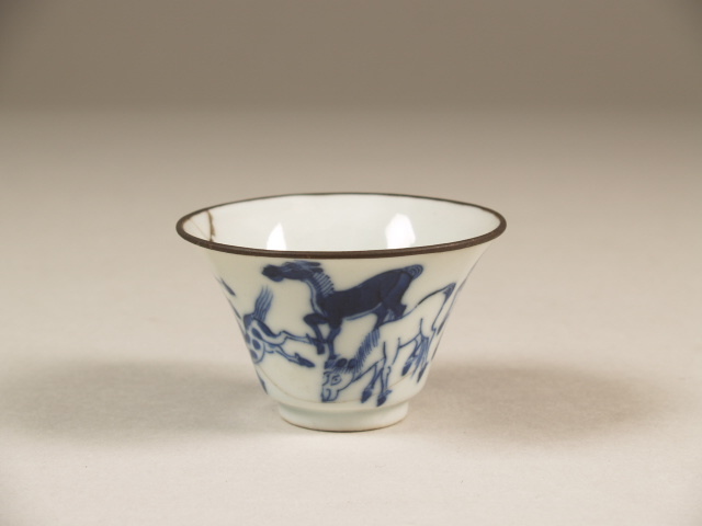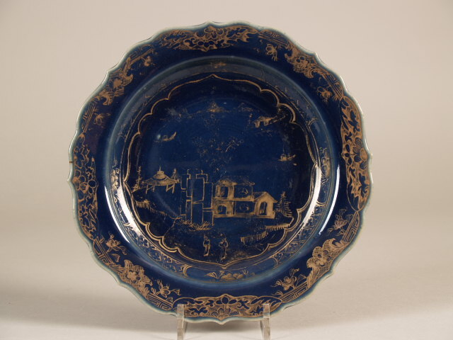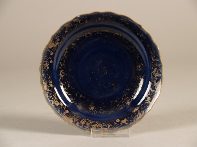 Schoteltje bedekt met een blauw glazuur en decor in ...
