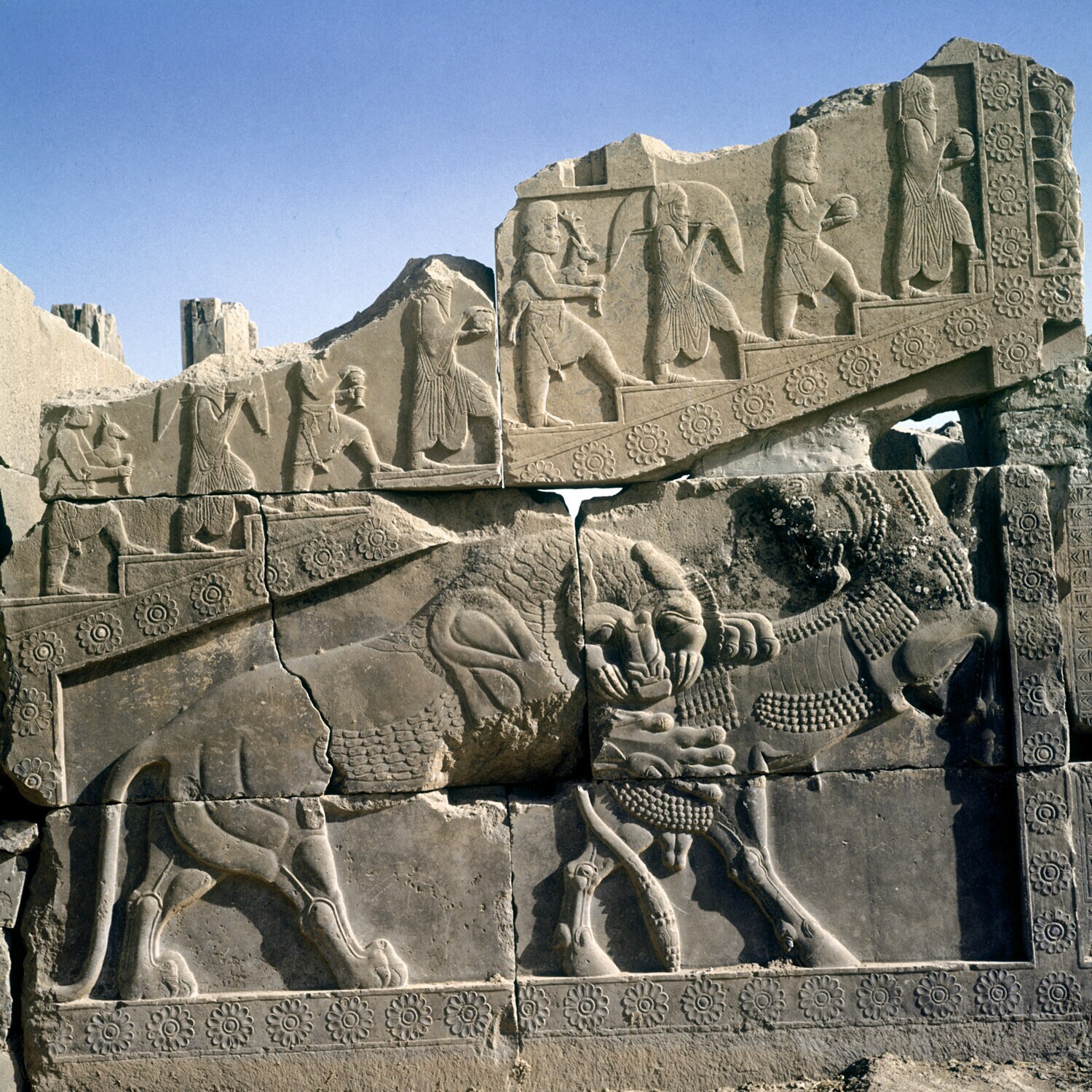 Reliëfs van het paleis van Darius, Persepolis. Leeuw...