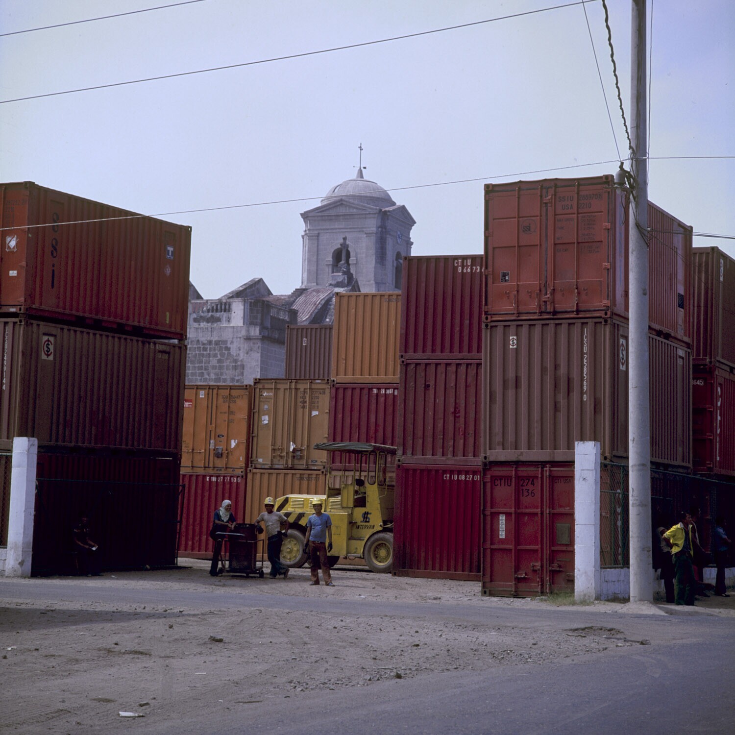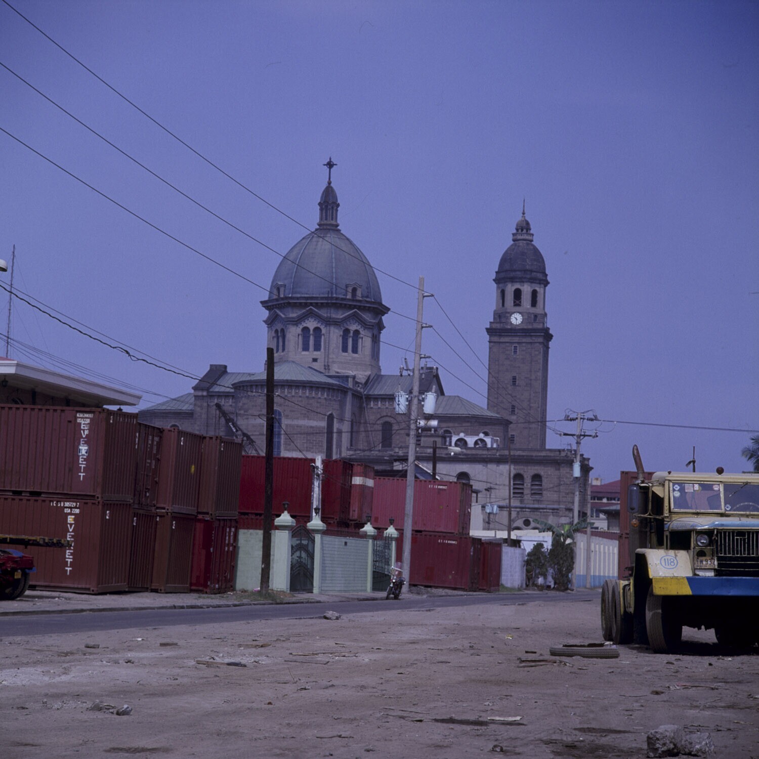 De San Sebastian kathedraal omringd met containers v...