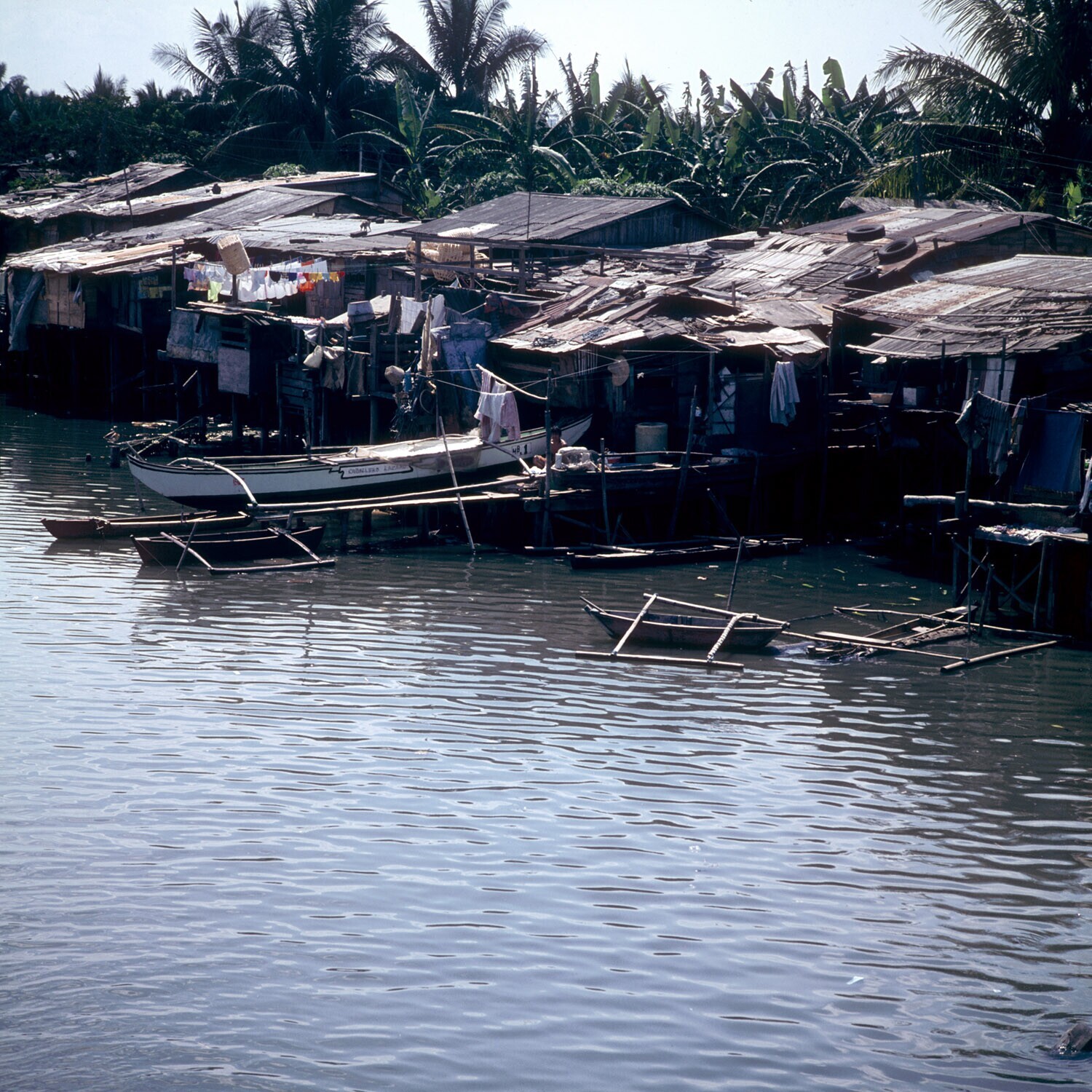 Woningen met bootjes aan de waterkant van het Tondo ...
