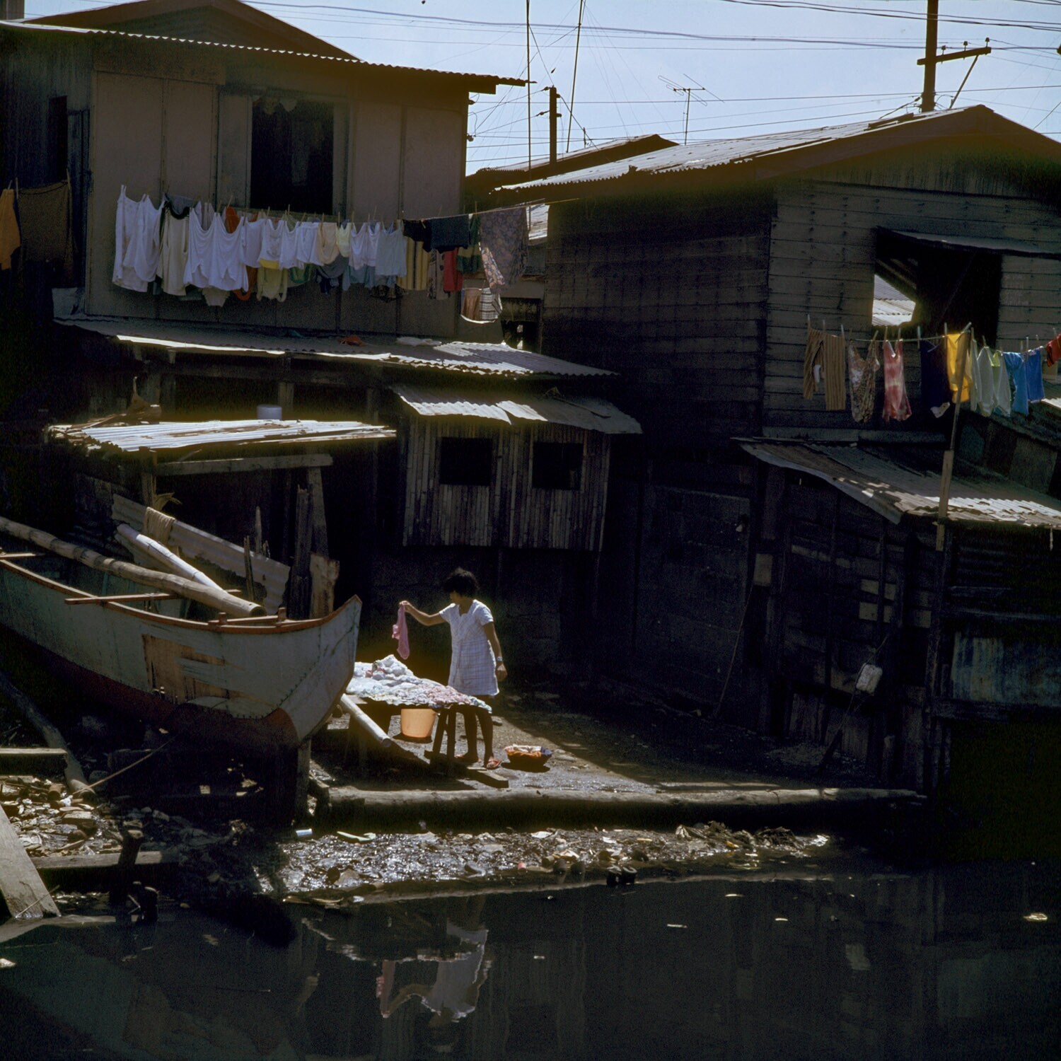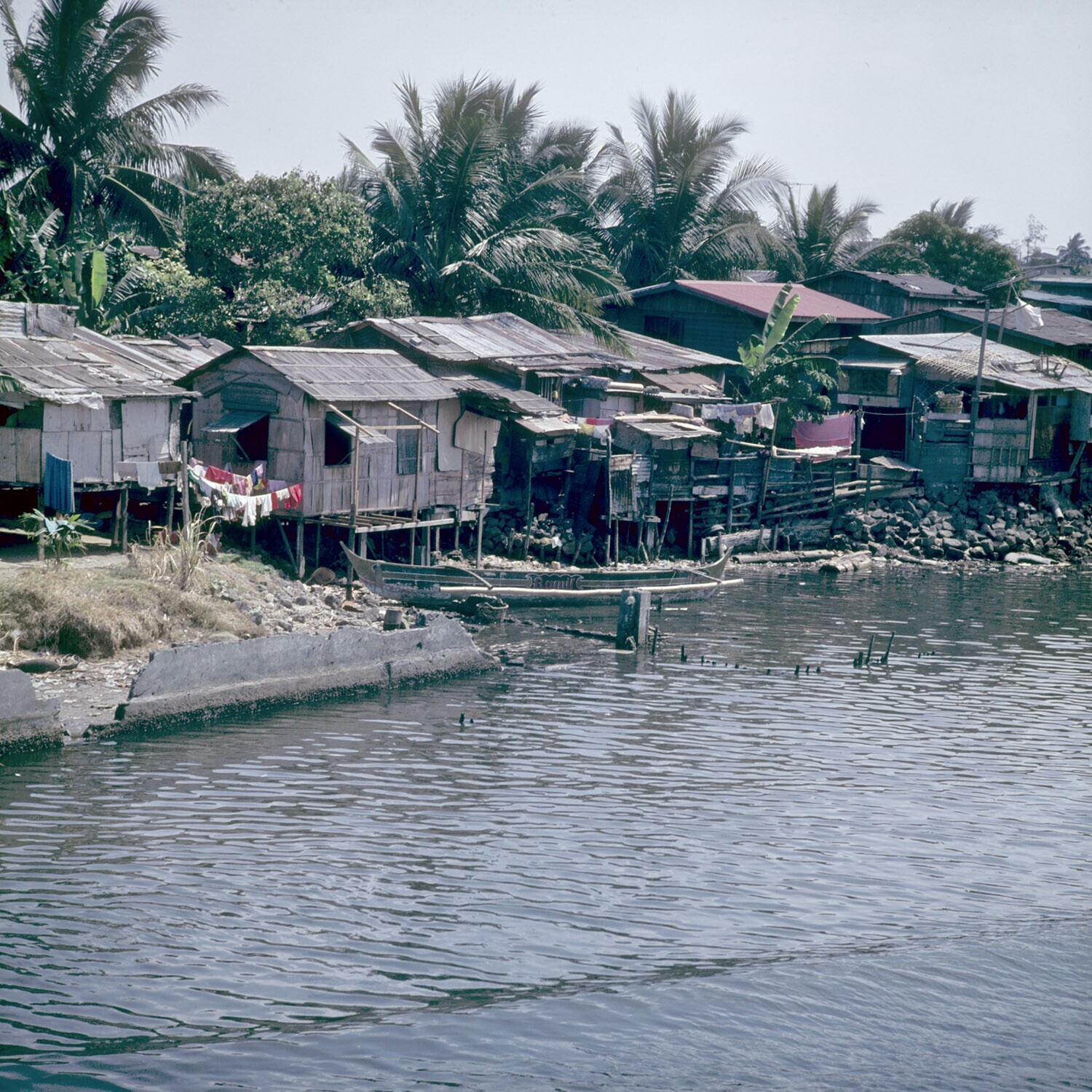 Woningen aan het water, Tondo district van Manila