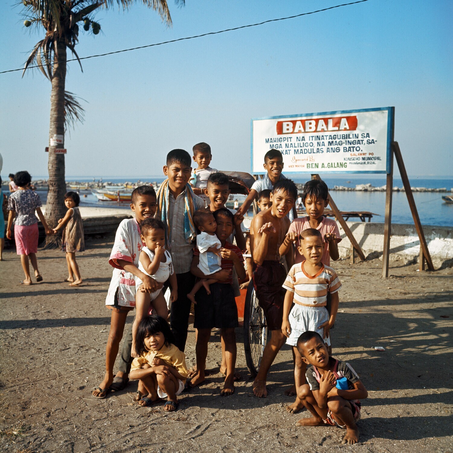 Kinderen op de Roxas boulevard bij de vismarkt. Mani...