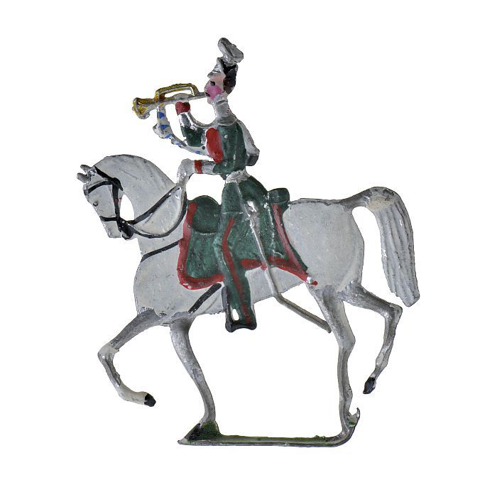 Tinnen figuren in de vorm van Pruisische trompettist...