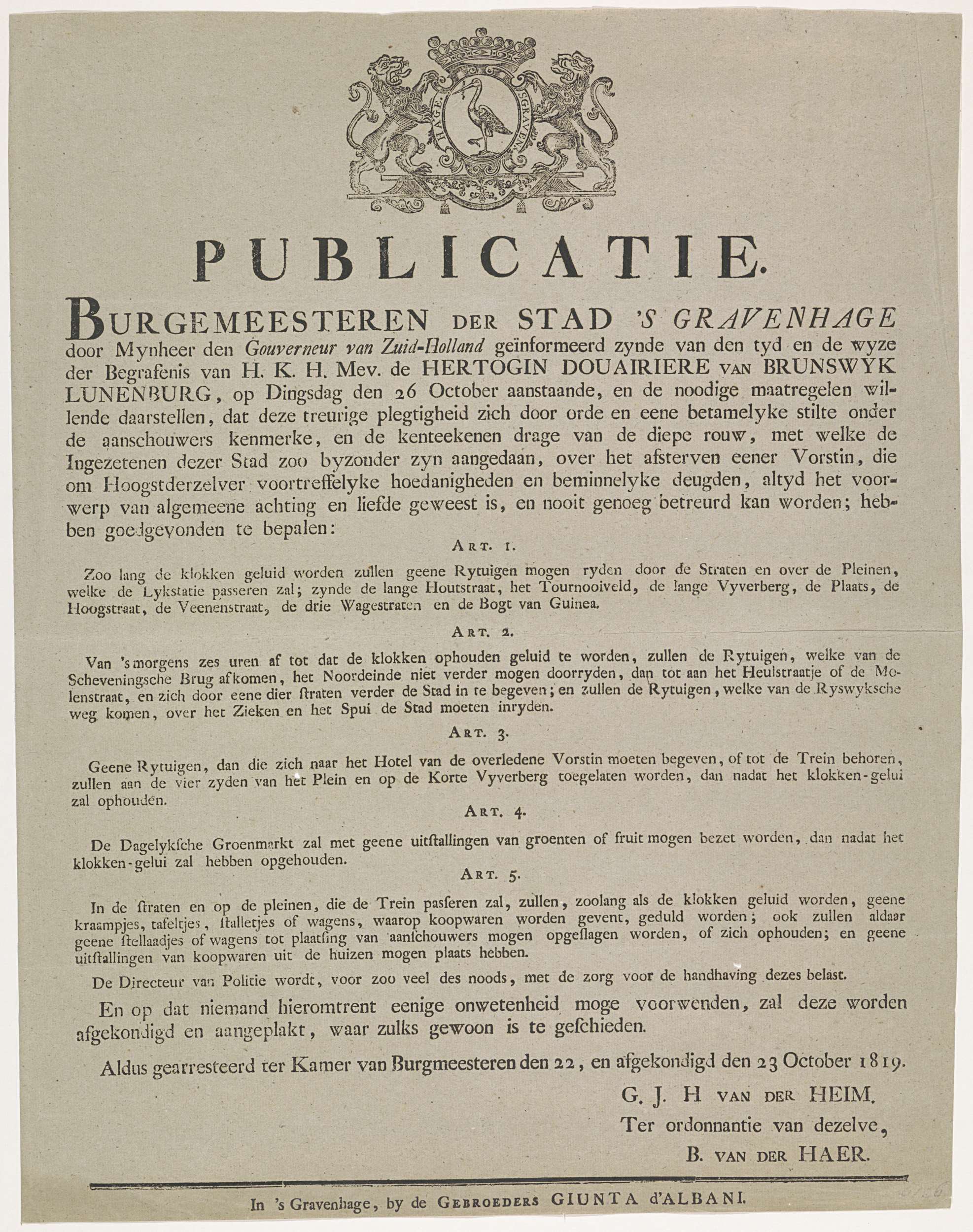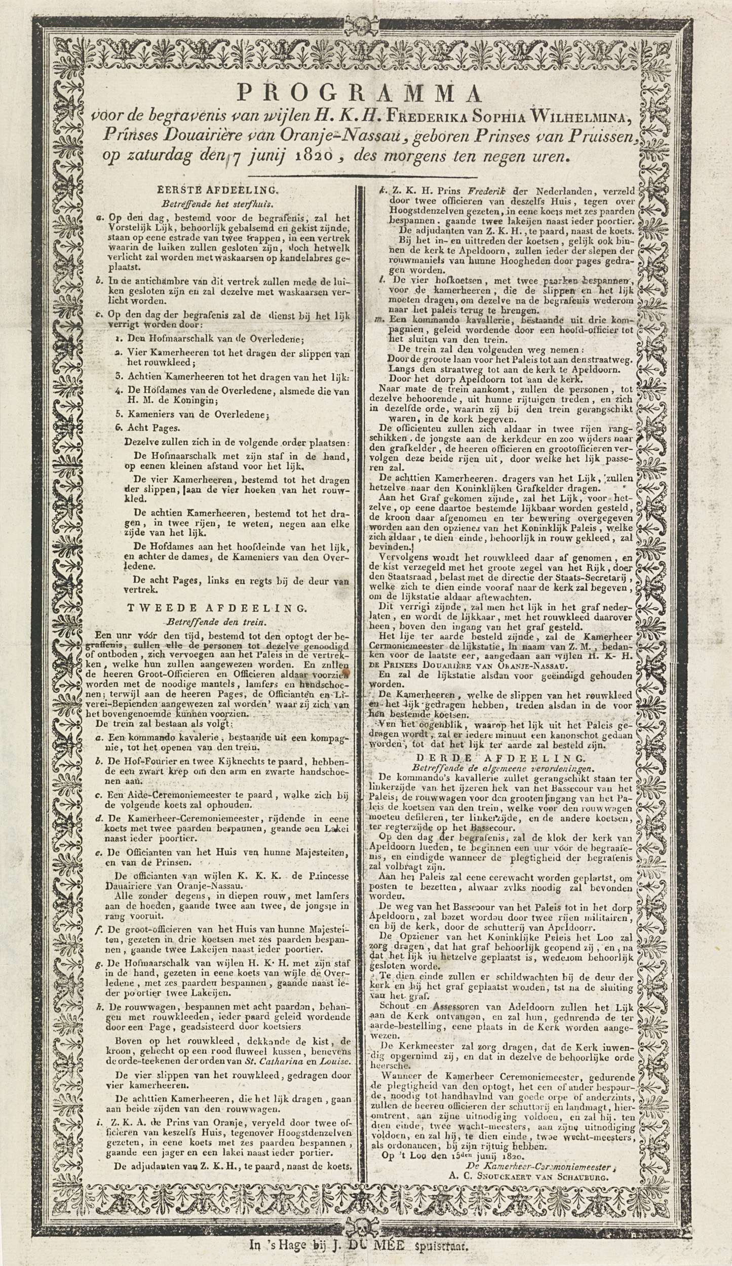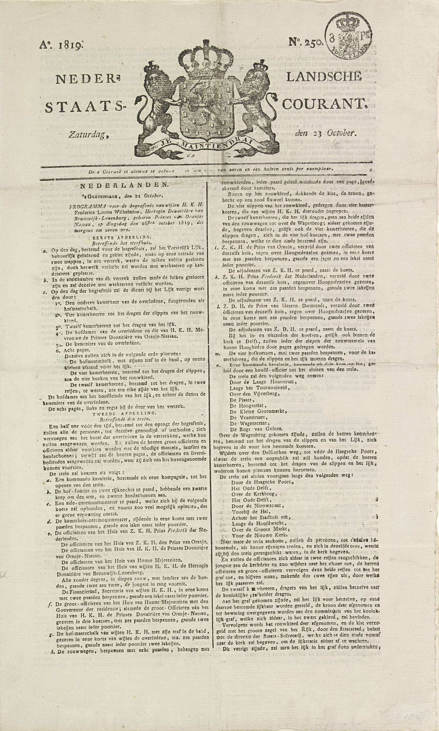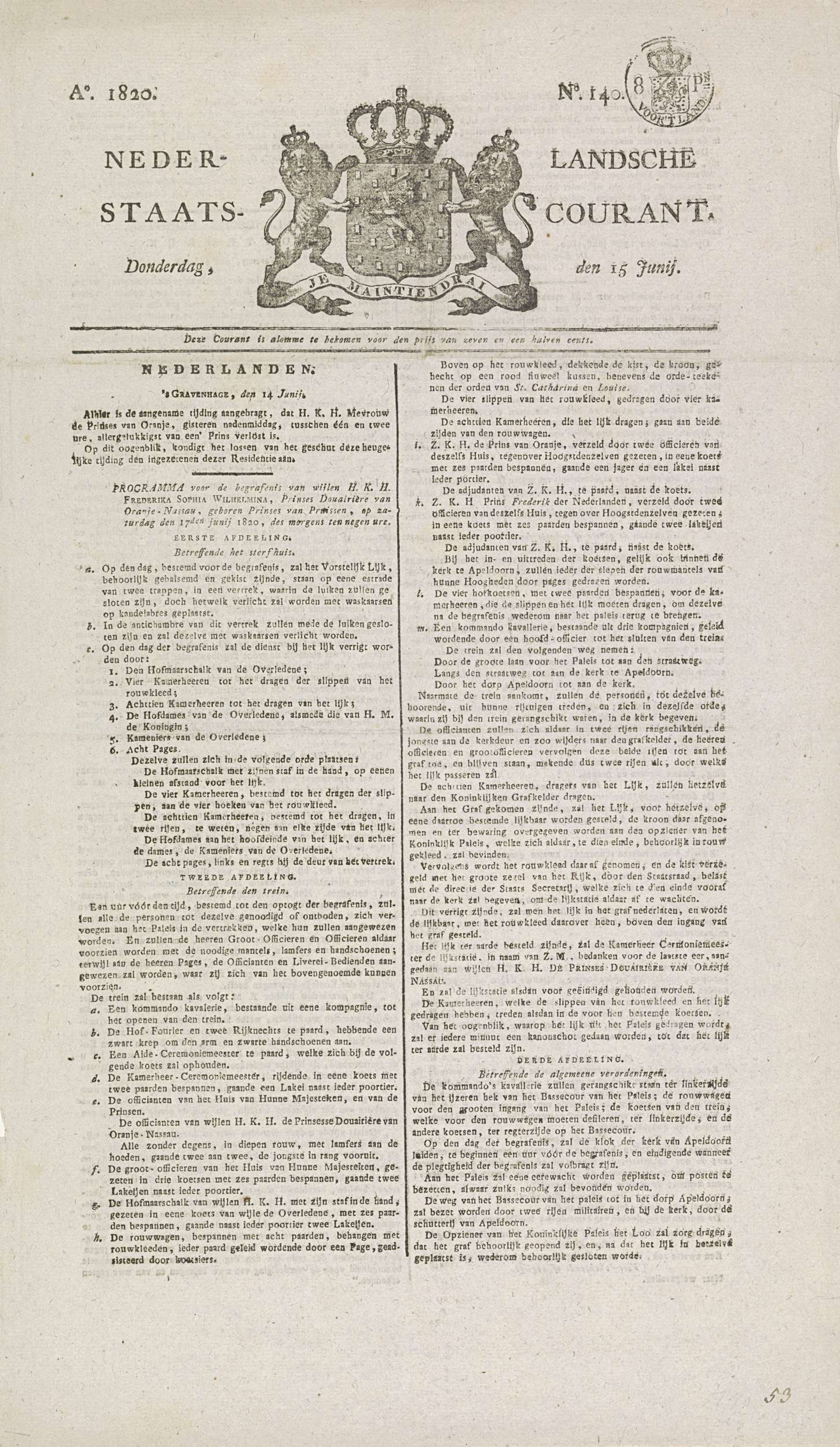 Staatscourant met het programma van de begrafenis va...